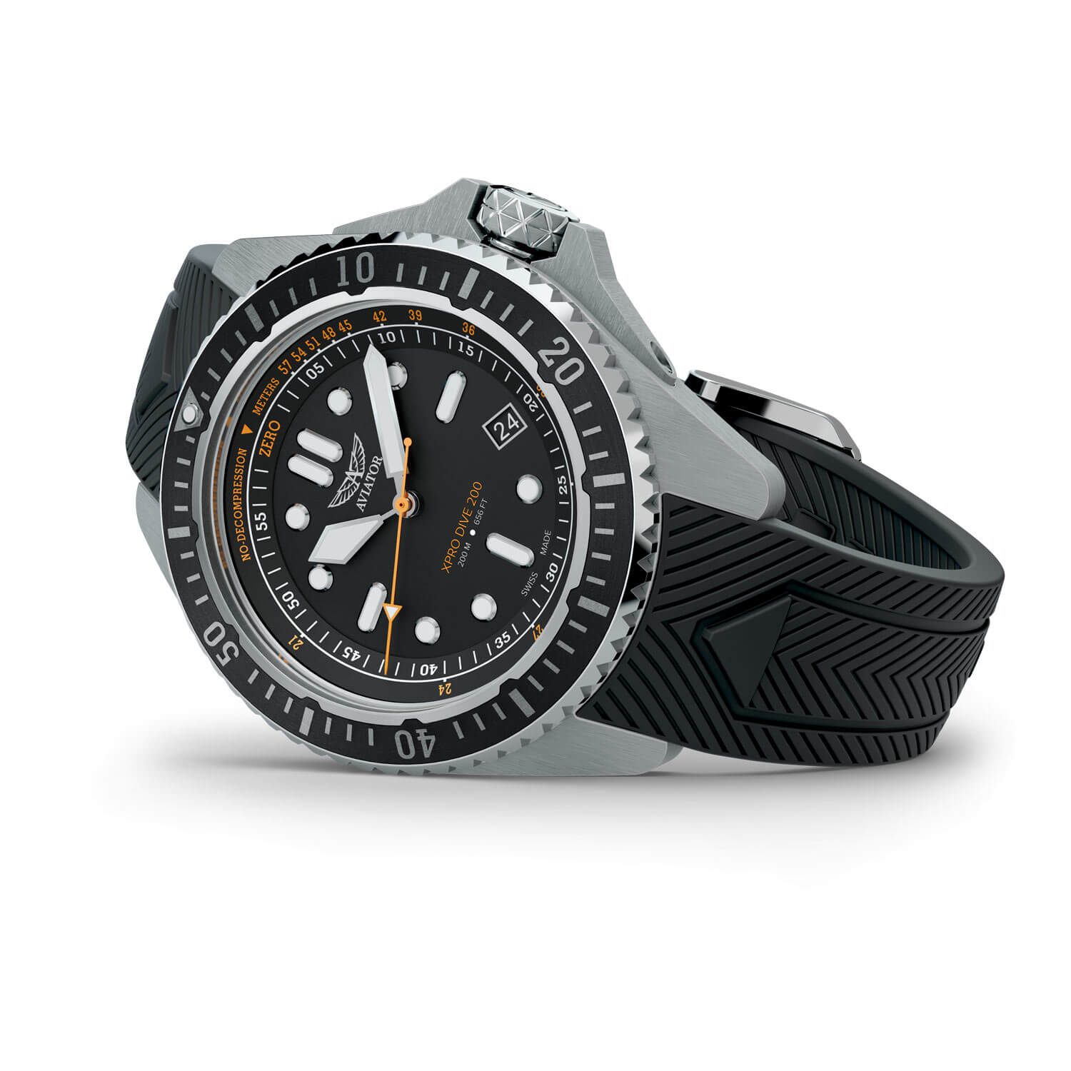 Pánské hodinky Aviator XPRO DIVE 200 V.1.42.0.371.6 byly vytvořeny pro lidi, kteří spojují živly – pro piloty a vysokohorské potápěče, pro něž hranice mezi vzduchem a vodou představuje jen další výzvu. Pánské potápěčské hodinky Aviator XPRO Dive 200 jsou nástrojem určeným k použití v extrémních podmínkách, kde o bezpečnosti rozhoduje přesnost. Vyznačují se odolností vůči změnám tlaku, vynikající čitelností a spolehlivostí, nabízejí uživateli to, co žádné běžné sportovní hodinky – kontrolu nad časem, i když se kyslík stává měnou.