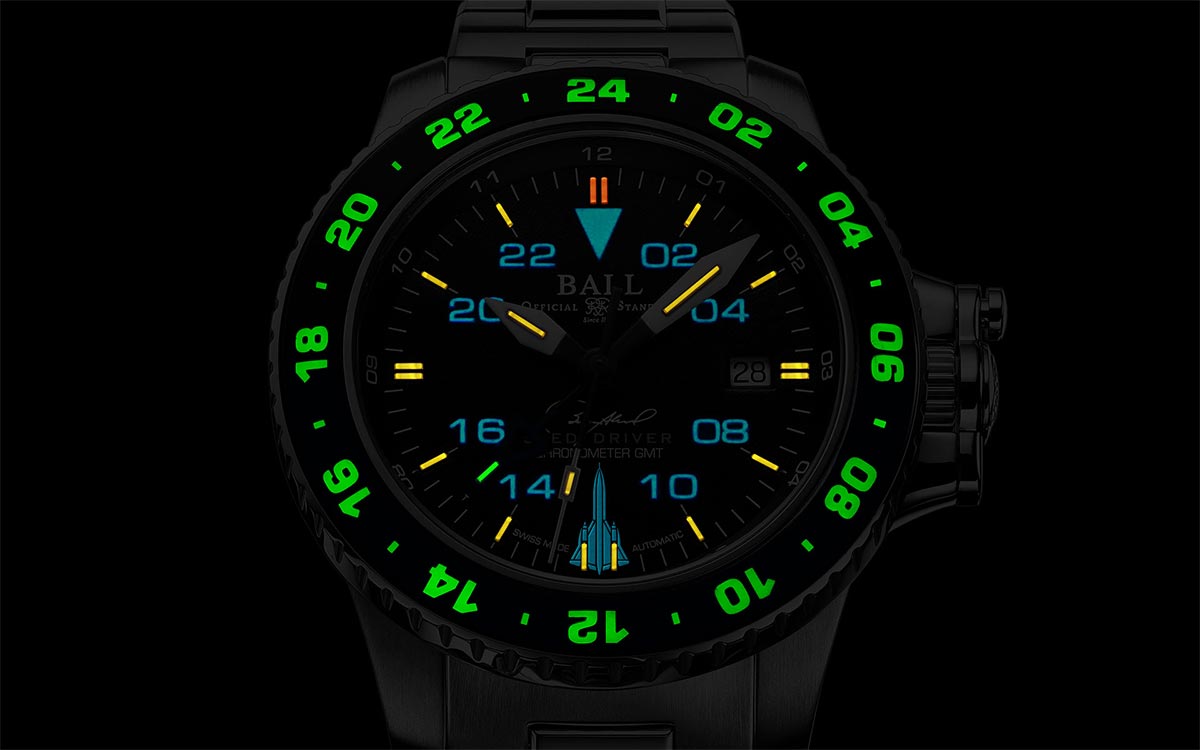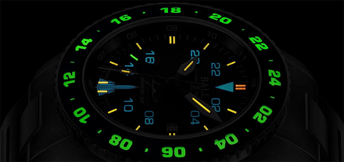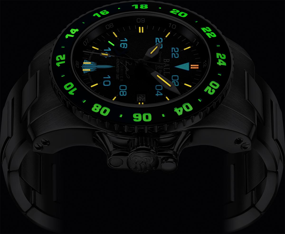 Ciferník časomíry na pozici 6 hodin zdobí silueta SR-71, legenda jeho pilotů „SLED DRIVER“ a podpis majora Briana Shula hned pod indikacemi. Korunka má patentovaný ochranný design. Na zadní straně pouzdra je vyrytý emblém Mach 3, který nosí všichni kvalifikovaní členové posádky SR-71 Blackbird. Ball AeroGMT Sled Driver má tři časová pásma GMT. Jedno je standardní časové pásmo, další je časové pásmo GMT a poslední je na obousměrném, 24hodinovém safírovém krytu. Jaké je jejich příkladné využití pro piloty nebo muže, kteří jezdí na časté výlety? Díky GMT ručičce mohou doma sledovat čas, díky rámečku - čas v místě určení a pomocí standardních indikací a stupnic se orientovat v místním čase. Každá hodinová značka je osvětlena inovativní technologií tritia, což znamená nezávislý zdroj osvětlení po dobu přibližně 25 let bez dobíjení! Living BALL Watch má pověst hodinek s nadprůměrným potenciálem odolnosti, model kolekce Engineer Hydrocarbon absorbuje nárazy až 7500 Gs a zaručuje antimagnetickou odolnost 4800 A. Modrá ručička GMT obsahuje zelenou plynovou trubici v odkazu na barvu značky BALL a rámeček v kombinaci černé a modré. Srdcem hodinek je švýcarský mechanický Machineek BALL RR1201-C s prestižním certifikátem Official Swiss Chronometer Testing Institute (COSC). Hodinky mají patentovanou motýlkovou sponu s nástavcem pro piloty v obleku i pro muže ve sportovním oblečení.