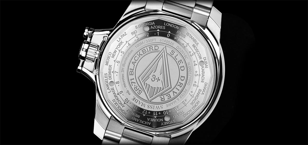Pánské hodinky Ball DG2018C-S17C-BK Engineer Hydrocarbon AeroGMT Sled Driver Limited Edition jsou revolučním a přelomovým modelem, který vyvede piloty i z té nejnepřátelštější temnoty. Navržen jako pocta vysloužilému pilotovi amerického letectva majoru Brianu Shulovi, který je součástí elitní skupiny pouze 92 pilotů SR-71 Blackbird - nejrychlejšího a nejlépe létajícího letounu v historii letectví. SR-71, kterému někteří piloti říkali „sáňky“, je nadzvukový strategický průzkumný letoun s dlouhým doletem vyvinutý pro CIA. Na druhou stranu Shul je legendární pilot Blackbird, který před získáním tohoto titulu prováděl hrdinské činy během a po vietnamském konfliktu. Sestřelen poblíž kambodžských hranic, uvězněn v hořících troskách na nepřátelském území, i přes nepatrnou šanci unikl životem, úspěšně se zotavil a dokončil potřebné fyzické lety, aby se mohl vrátit k pilotování stíhaček. Tím prokázal svou nezdolnou výdrž a neschopnost se vzdát, díky čemuž ho tvůrci BALL uznali za dokonalý příklad odrážející hodnoty, na kterých hodinky Ball vznikají. Výše uvedená nabídka je speciální limitovanou edicí 1990 kusů na počest roku 1990, kdy byly na posledním letu SR-71 Blackbird ve výzbroji USAF stanoveny čtyři rychlostní rekordy National Aeronautic Association a tři Fédération Aéronautique Internationale. Na rubu najdeme unikátní záda pouzdra z titanu s vyrytou stíhačkou a časovými pásmy.