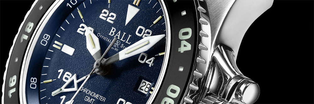 Hodinky Engineer Hydrocarbon AeroGMT II se vyznačují sportovním pouzdrem, které je osazeno unikátní ochranou korunky. Tradičně má časomíra 43 plynových tyčí na ručičkách, číselníku a otočné lunetě. Safírové sklíčko odolné proti poškrábání najdeme nejen na pouzdře, ale také na obousměrné otočné lunetě s 24hodinovým časem. Ball AeroGMT II poskytuje čitelnost, prémiový materiál a mužný vzhled. Přes den se hodinky prezentují v klasických barvách modré a bílé, ale ve tmě zaujmou zářivě modrou, žlutou a oranžovou barvou mikroplynových trubic a SuperLuminova.