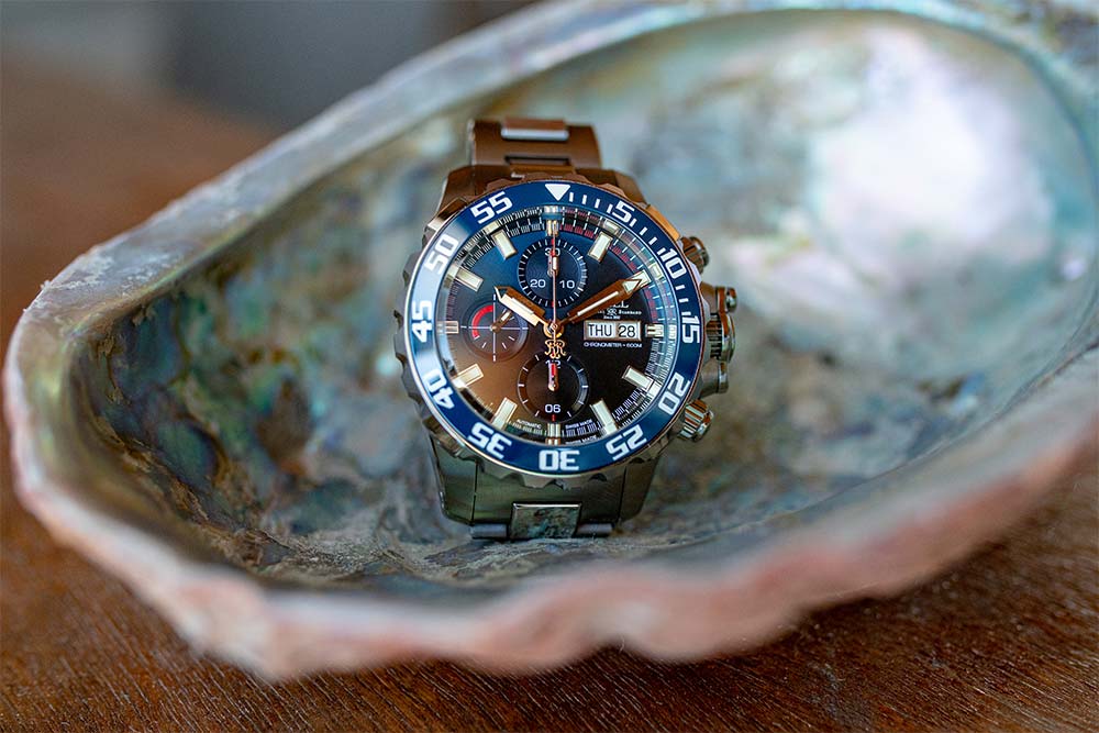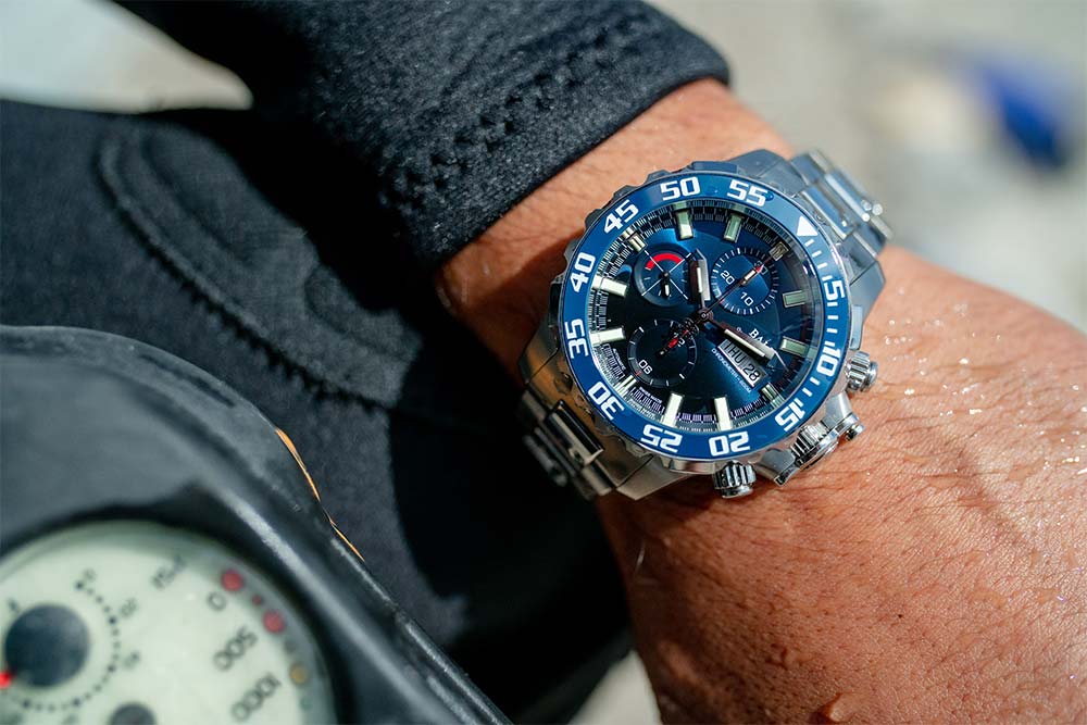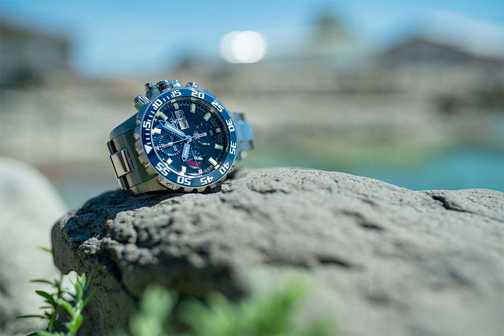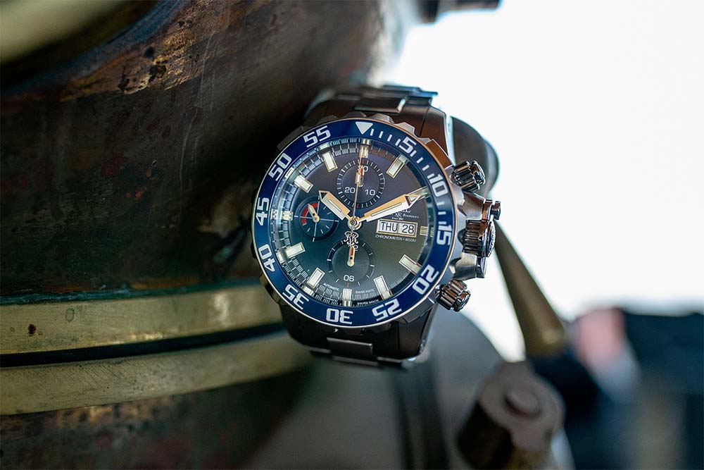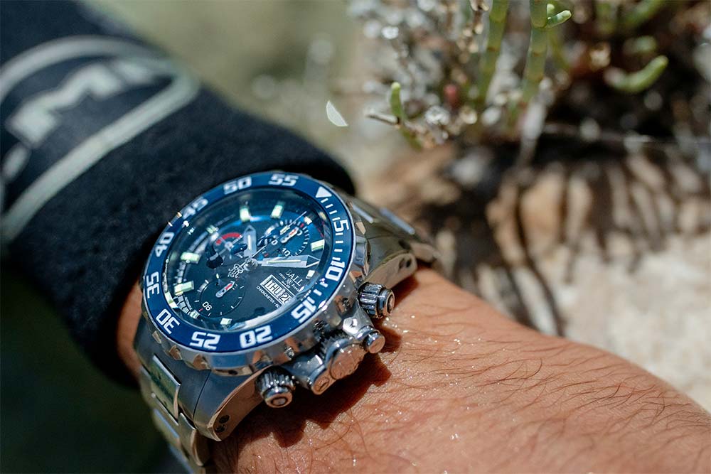 Prezentovaný model DC3226A-S3C-BE je tedy důvěryhodným plodem působivé vášně a neocenitelných zkušeností. Pokračuje ve výrazně industriálním vzoru a evokuje průmyslového ducha minulosti, který stále hlídá přesný čas. Pečlivě zabudované do podoby sportovních hodinek s koncepčním barevným schématem inspirovaným podmořskou hloubkou nabízí spoustu vzácných výhod. Jednou z nich je mimořádná třída voděodolnosti dosahující až 600 metrů! Díky tomu lze s časomírou zacházet jako s plnohodnotným náMachineem pro profesionální diverské použití. Navíc je vybaven patentovaným heliovým ventilem a zajišťuje jeho bezpečnost i po vynoření z vody. Ventil reguluje uvolňování zbytkových částic helia, které hodinky nashromáždily při pobytu v podmínkách zvýšeného tlaku. Majitel navíc dostává ještě jednu funkci, ze které může těžit pod povrchem. Jde o chronograf, který lze používat pod vodou. Jeho kvalitu potvrzuje uznávaný certifikát COSC, který zároveň informuje, že časomíra splňuje všechny přísné požadavky ISO 3159 pro chronometry z hlediska přesnosti měření času.
