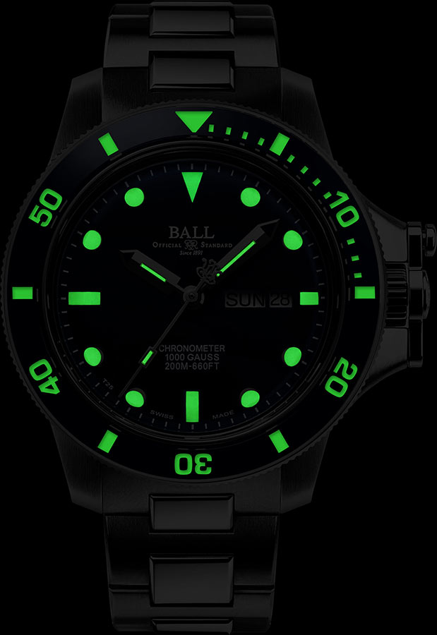 Díky zapojení do četných výzkumů a vývoje vlastních patentů se značce Ball podařilo vyvážit funkčnost se sportovním a sofistikovaným vzhledem. Engineer Hydrocarbon Original má jednosměrný rám se zeleně zářícím plynem H3 uvnitř safírového kroužku odolného proti poškrábání. Ikonické mikrotrubičky na plyn najdete také na ručičkách a vůbec poprvé pod číselníkem, což umožňuje bezkonkurenční jas ve tmě. Tato nejmodernější švýcarská technologie nevyžaduje nabíjení. Svítí nepřetržitě po dobu 25 let 100krát jasněji než nejjasnější luminiscenční barva používaná v hodinářství.