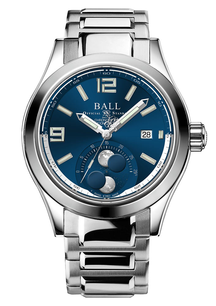 Dvojitý displej fází Měsíce přesně zobrazuje cykly jak na severní, tak na jižní polokouli. Výstupek v 6 hodinách zobrazuje fáze Měsíce pro obě polokoule, přesně odrážející přírodní astronomické jevy. Hodinky Ball jsou dodávány v průměru 43 mm a jsou vybaveny náramkem s bezpečným a snadno ovladatelným motýlkovým zámkem. Zadní strana pouzdra je ocelový kryt zdobený ražbou ve formě lokomotivy, která je neodmyslitelným symbolem značky Ball. S limitovanými hodinkami Ball můžete plavat - pouzdro je vodotěsné do hloubky 100 metrů.
