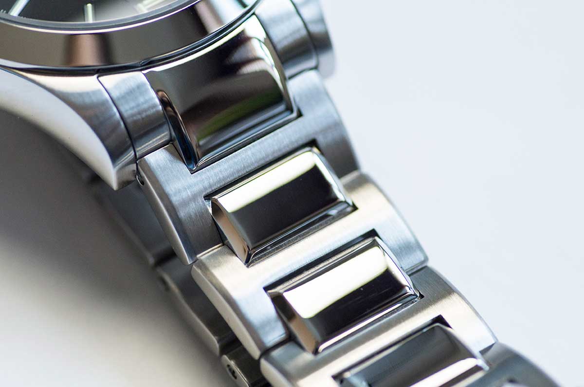 Materiál, ze kterého je vyrobeno pouzdro hodinek – např. ušlechtilá ocel, titan, keramika, zlato nebo plast.