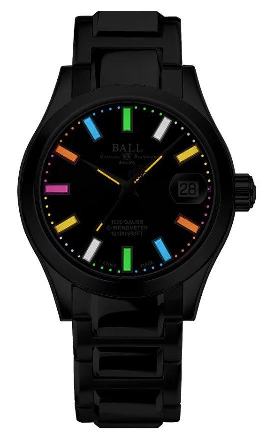Logo BALL na černém štítu je symbolem preciznosti v souladu s oficiálními železničními normami platnými od samého počátku značky. Dvě písmena „RR“ odkazující na chronometr jsou poctou železničnímu dědictví, které je nedílnou součástí historie švýcarského výrobce hodin. Ciferník hodinek byl záměrně zjednodušen se zaměřením na světelné indexy. Díky tritiovým plynovým mikrotrubičkám v duhových barvách jsou indexy a ručičky dobře viditelné i v noci a zajišťují bezkonkurenční odečítání času. Inovativní švýcarská technologie BALL založená na zapouzdření plynu H3 do mikrotrubičkového skla zaručuje, že hodinky jsou vždy jasné, bez nutnosti externího dobíjení.