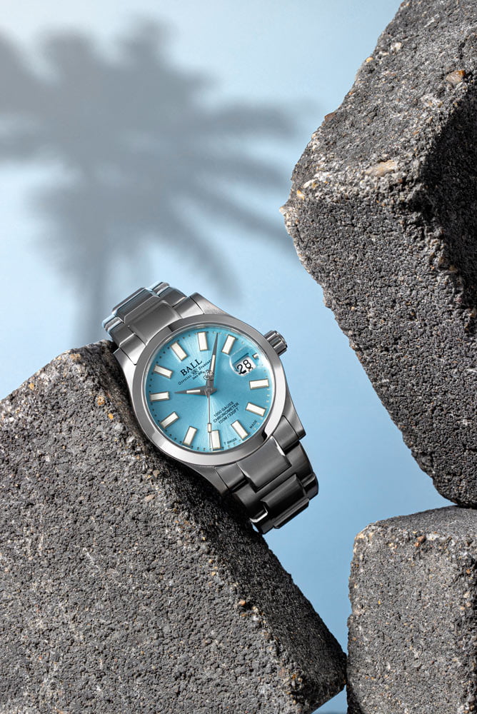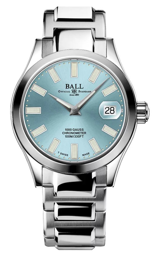 Logo BALL na světle modrém štítu (ledově modré) je symbolem preciznosti, v souladu s oficiálními železničními normami platnými od samého počátku existence značky. Dvě písmena „RR“ odkazující na chronometr jsou poctou železničnímu dědictví, které je nedílnou součástí historie švýcarského výrobce hodin. Ciferník hodinek byl záměrně zjednodušen se zaměřením na světelné indexy. Díky mikrotrubičkám s plynem tritium jsou indexy a ručičky perfektně viditelné i v noci a zajišťují bezkonkurenční odečítání času. Inovativní švýcarská technologie BALL založená na zapouzdření plynu H3 do mikrotrubičkového skla zaručuje, že hodinky jsou vždy jasné, bez nutnosti externího dobíjení.