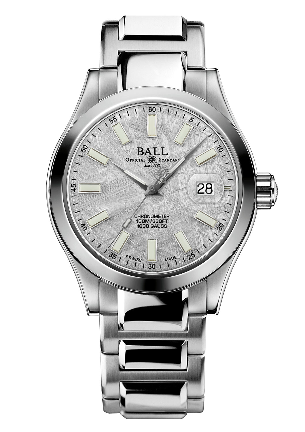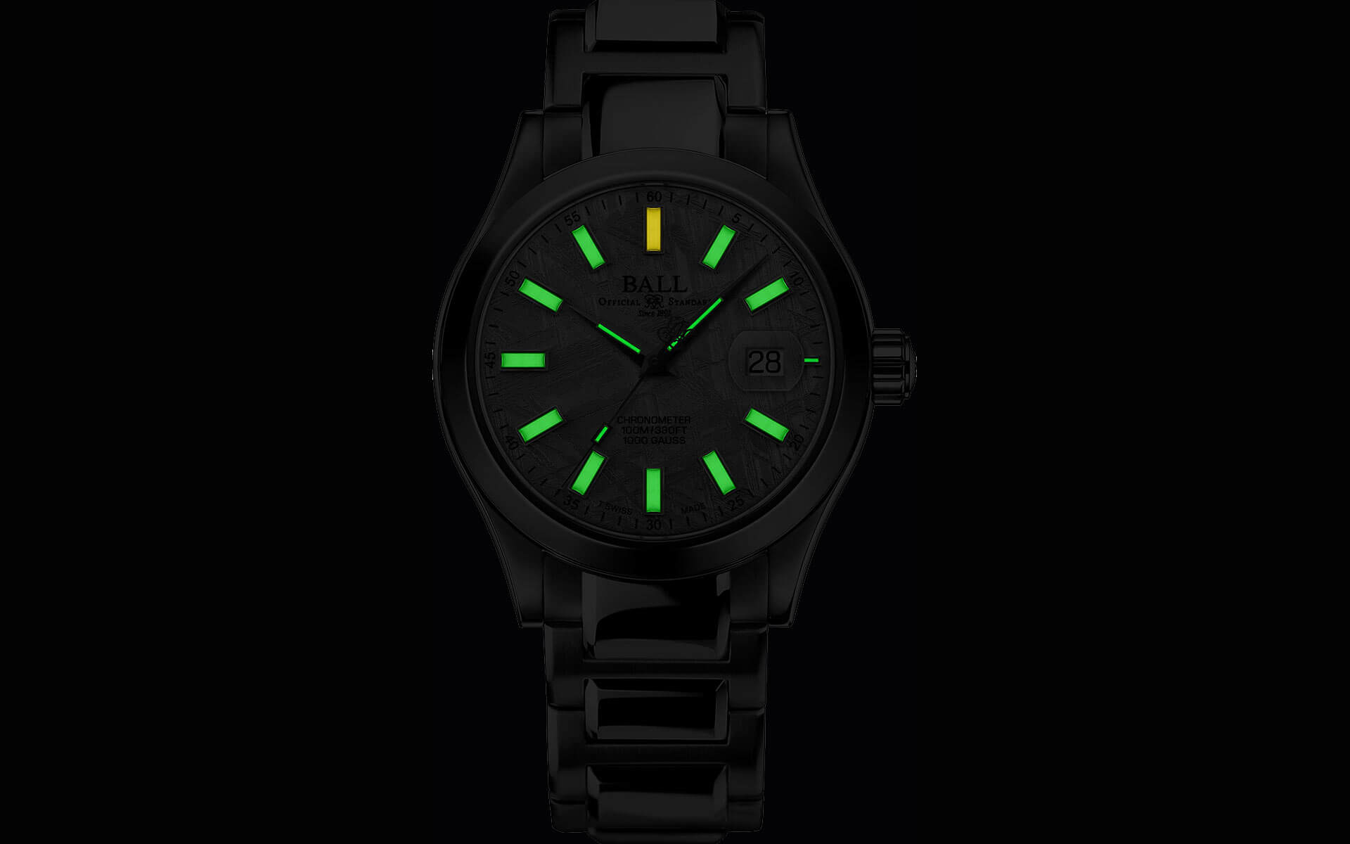 Nejvýraznějším prvkem těchto hodinek je jejich ciferník, vyrobený z autentického meteoritu. Šedý, jedinečný vzor mu dodává kosmický charakter a zaručuje, že každý kus je originální. Indexy a ručičky jsou naplněny tritiem, díky čemuž je ciferník mimořádně čitelný za jakýchkoliv světelných podmínek. Mikroplynové trubičky vyzařují intenzivní, dlouhotrvající světlo bez ohledu na temnotu okolí. Toto řešení, charakteristické pro hodinky Ball, zajišťuje dokonalou viditelnost i uprostřed noci. Uvnitř pouzdra pracuje přesný automatický mechanismus s certifikátem COSC, který potvrzuje jeho spolehlivost a přesnost. Tento švýcarský certifikát je zárukou, že hodinky splňují nejvyšší standardy přesnosti chodu. Automatické hodinky Ball NM9026C-S46C-MSL jsou skutečným mistrovským dílem hodinářského inženýrství, které uspokojí i ty nejnáročnější uživatele.
