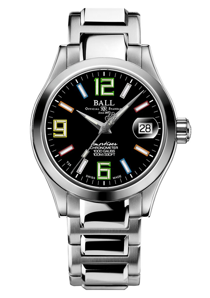 Přední strana pouzdra je kryta kvalitním safírovým sklem. Kryje černý ciferník s přehlednými ručičkami a indexy. O čitelnost ciferníku tohoto modelu se postarala značka Ball. Ručičky a indexy jsou podsvíceny tritiem v barvách duhy. Brilantnost plynové mikrotrubičky se nevyrovná žádné jiné formě luminiscence používané v hodinářství. Nevyžaduje nabíjení a jeho technologie zahrnuje miniaturní trubičky, nejprve potažené fosforovým práškem a poté naplněné plynem. Na číselníku je také datumovka. Okénko s lupou ve tři hodiny informuje o aktuálním dni v měsíci.