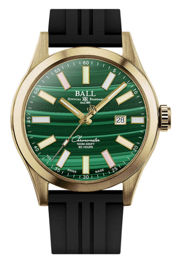 Výjimečným prvkem je číselník z přírodního malachitu – kamene symbolizujícího proměnu a sílu přírody. Jeho hluboká zeleň s organickým žilkováním kontrastuje s tritiovými mikrokapslemi, které svítí nepřetržitě po celý den a noc. Safírové sklíčko s antireflexní vrstvou a datumovka na třetí hodině dotvářejí kompozici spojující emoci, inženýrskou preciznost a nadčasovou estetiku. Hodinky Ball Automatic COSC ND2186C-P8CJ-MAL na gumovém řemínku jsou manifestem nezávislosti a vnitřní síly – z materiálů, které stárnou s grácií, a s designem, který má vydržet roky, nikoli sezóny.