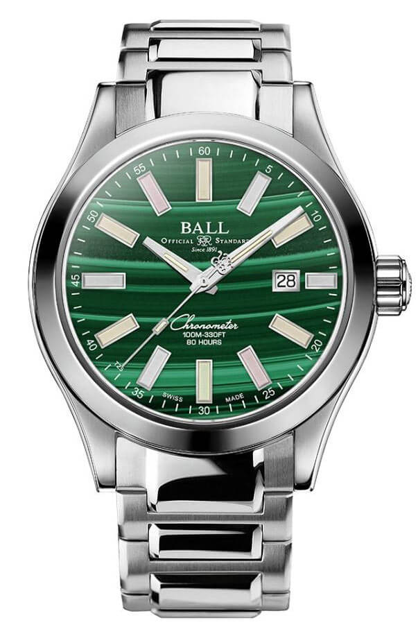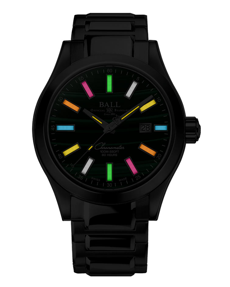 Pouzdro je vyrobeno z mimořádně odolné oceli 904L – slitiny s působivou trvanlivostí a hlubokým leskem, používané v hodinkách nejvyšší třídy. Integrovaný náramek ze stejného materiálu tvoří kompaktní, monolitický celek, který zaujme svou robustností a vyváženou formou. Šroubovací průhledné dýnko ukrývá srdce těchto hodinek – manufakturní strojek Ball RRM7309-C s certifikací chronometru COSC, 80hodinovou rezervou chodu, antimagnetickou ochranou do 1000 Gaussů a systémem odolnosti proti otřesům.