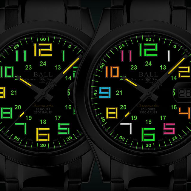 Dalším standardem, pro který Engineer M Pioneer zvýšil laťku, je standard čitelnosti. Je to vidět na designu ciferníku, na kterém jsou každou hodinu velké arabské číslice složené z revolučních mikro trubic plynu, jejichž svítivost je asi 100x větší než u luminiscenčních barev. Co se týče barev, v automatických hodinkách Ball NM9032C-S2C-GR1 vynikají svým klasickým stylem: zelené a žluté plynové trubice vytvářející harmonii. Všechny tři ručičky jsou také vybaveny mikroplynovými trubičkami s přidáním povlaku Super-LumiNova na minutové stopě a vnitřním hodinovým kroužkem. Za všech tmavých a špatných světelných podmínek se miniaturní trubice, které nevyžadují nabíjení, automaticky rozsvítí, což vám poskytne nejčistší odečítání času.