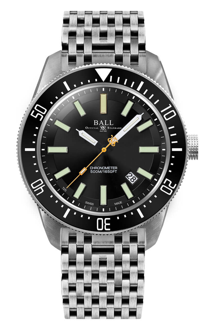 Pouzdro o průměru 42 mm je vyrobeno z korozivzdorné nerezové oceli a spojeno s masivním, pětřadým náramkem typu „engineer“, který zajišťuje stabilitu i v dynamickém prostředí. Model nabízí působivou vodotěsnost až do 500 metrů, díky čemuž patří mezi technicky nejvyspělejší potápěčské hodinky značky Ball. Jednosměrně otočná luneta s potápěčskou stupnicí a šroubovací korunka zaručují bezpečnost a funkčnost i při práci v hlubinách. Celkové robustní provedení je připraveno čelit jakékoli výzvě pod vodní hladinou.
