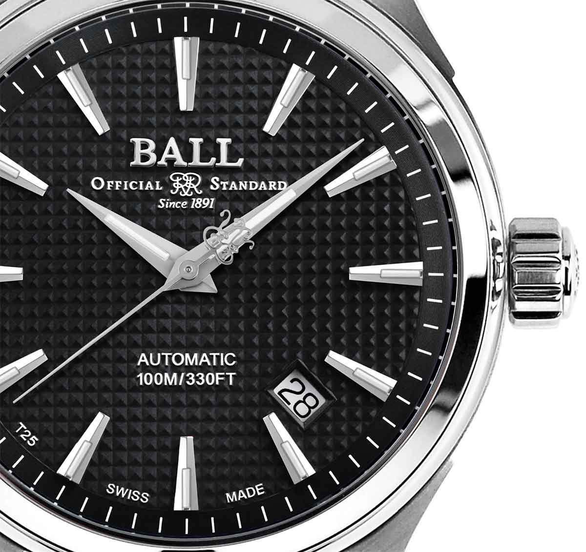 Ball Fireman Victory má úžasný černý ciferník se vzorem Clous De Paris. Ciferník ve tvaru pánve dodává hodinkám hloubku. Základní indexy a špičaté ručičky obsahují mikro trubičky plynu, které nepřetržitě svítí po dobu 25 let.