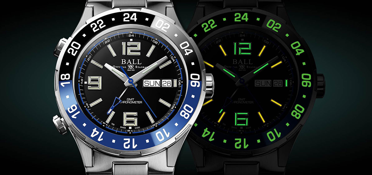 Titanové pouzdro modelu Roadmaster Marine GMT díky své lehkosti umožňuje intenzivní průzkum naší zeměBALL. Díky průkopnickému přístupu k luminiscenci zajistí mikrotrubičky plněné 3H plynem dokonalé čtení indikací prezentovaných na číselníku v úplné tmě. Svítí až 100x jasněji než běžná luminiscenční látka a hlavně nevyžadují externí zdroj světla. Keramická vložka má zase aplikace z vysoce kvalitní fluorescenční látky - Super-LumiNova® , která umožňuje volné čtení třetí zóny v naprosté tmě.
