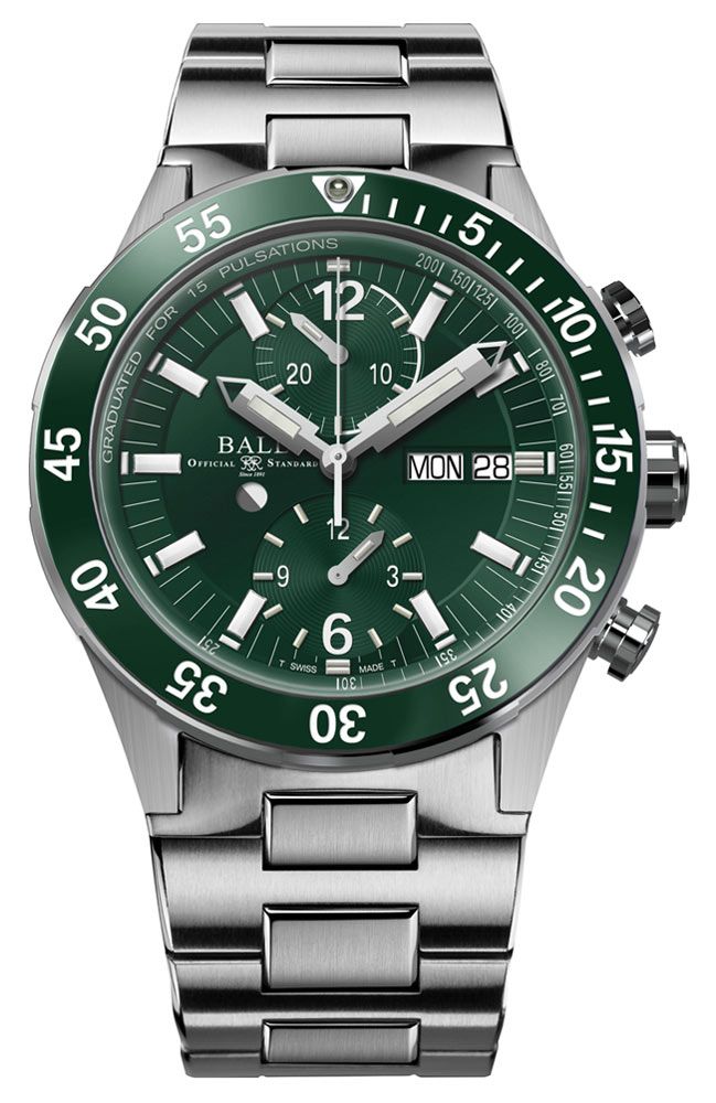 Stopky lze ovládat pomocí dvou tlačítek vybavených patentovaným zámkovým systémem Ball Watch. Stačí otočit tlačítky, abyste zámek zvedli a zapnuli, a poté je znovu otočte, abyste odstranili riziko neúmyslné manipulace. Ručička chronografu spolupracuje s 15-pulzní stupnicí monitoru srdečního tepu a rychle změří vaši srdeční frekvenci. Chcete-li spustit systém srdeční frekvence, spusťte stopky a počítejte srdeční tep. Zastavte chronograf, když udeří 15. úder. Indikace vás bude informovat o rozsahu a frekvenci pulsu za minutu. Kromě stupnice monitoru srdečního tepu mohou stopky sledovat dlouhé časové úseky. Tote ve 12 hodin je 30minutové počítadlo, zatímco tote v 6 hodin je 12hodinové počítadlo. Hodinky jsou zavěšeny na náramku, který je lehčí než ten tradiční, protože má nejen ocelové, ale i titanové články.