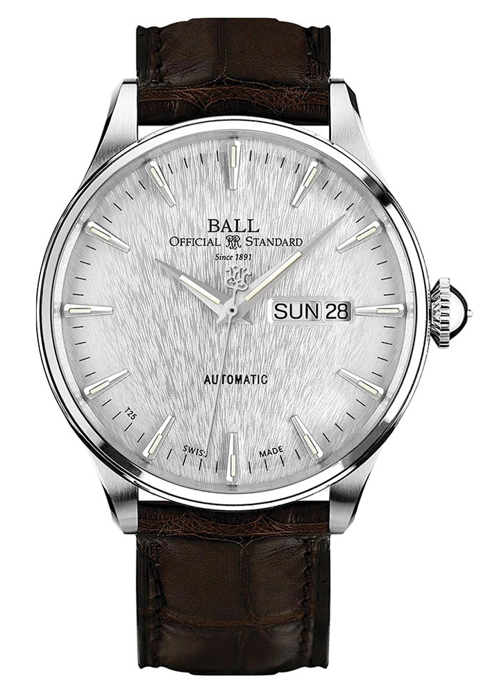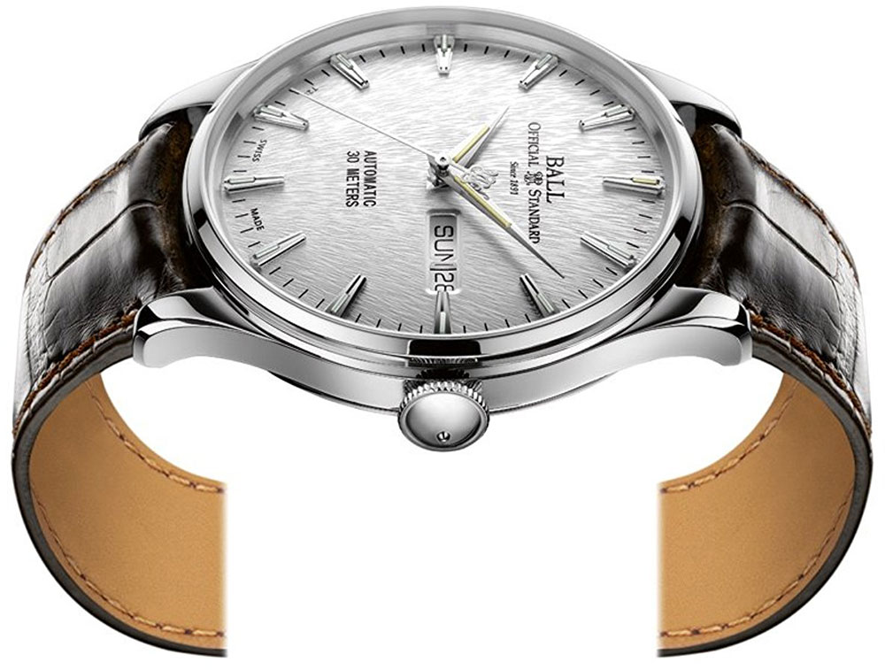 Ball Trainmaster Eternity NM2080D-LL1J-SL jsou jedny z nejtenčích automatických hodinek v celé řadě Ball. Pouzdro z nerezové oceli o průměru 39,50 mm a výšce 11,80 mm je tenké a pohodlně padne na zápěstí. Konvexní safírové sklíčko s vnitřní antireflexní ochranou chrání krásně zdobený ciferník s trubičkami naplněnými tritiovým plynem. Ze spodní části hodinek se nachází zadní část pouzdra zasklená safírovým sklem. Ve tři hodiny Ball umístil neobvyklou, příliš velkou korunku s tenkým žebrováním, nastavení času je rychlé a pohodlné.