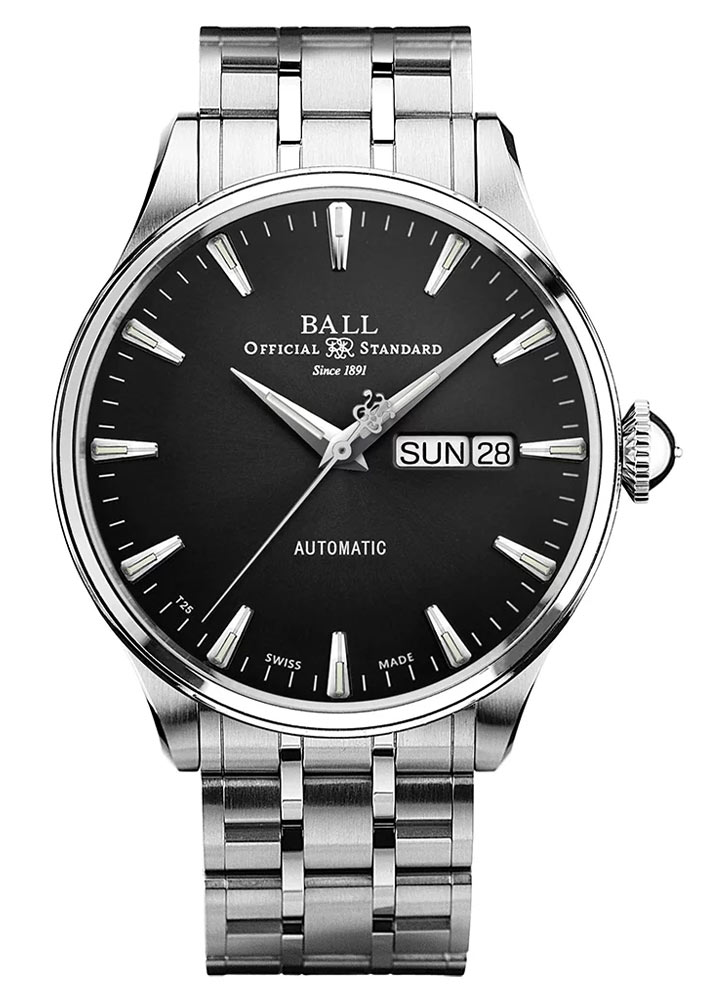Ball Trainmaster Eternity NM2080D-S1J-BK jsou jedny z nejtenčích automatických hodinek v celé řadě Ball. Pouzdro z nerezové oceli o průměru 39,50 mm a výšce 11,80 mm je tenké a pohodlně padne na zápěstí. Konvexní safírové sklíčko s vnitřní antireflexní ochranou chrání krásně zdobený ciferník s trubičkami naplněnými tritiovým plynem. Ze spodní části hodinek se nachází zadní část pouzdra zasklená safírovým sklem. Ve tři hodiny Ball umístil neobvyklou, příliš velkou korunku s tenkým žebrováním, nastavení času je rychlé a pohodlné.