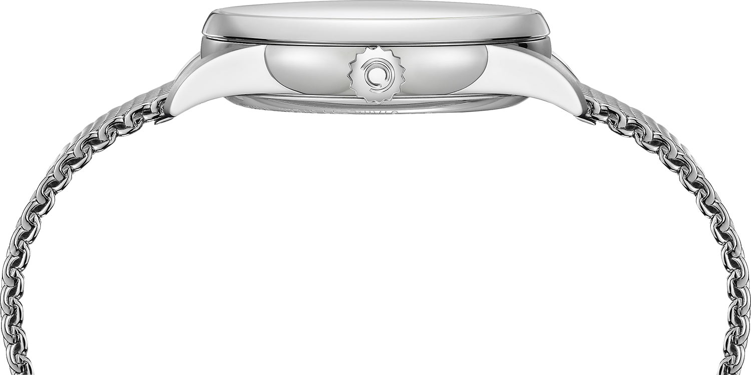 Kulaté pouzdro o průměru 40 mm je nasazeno na milánském náramku, který hodinkám dodává jedinečný charakter. Stříbrný náramek dodává nejen eleganci, ale také zajišťuje komfort nošení v každé situaci díky bezpečné a pohodlné motýlkové sponě. Zadní strana pouzdra je opatřena krytem, který umožňuje obdivovat precizní mechaniku hodin. Tento model je vybaven přesným, automatickým strojkem ETA 2834 Swiss Made s rezervou chodu až 40 hodin. Strojek poháněný pohybem zápěstí je v hodinářském světě známý systém, který svého majitele nezklame.
