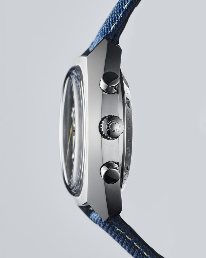 Pouzdro ve tvaru tonneau je vyrobeno z nerezové oceli třídy 316L v pánské velikosti 43,30 mm a utěsněno na 200 metrů. Vodotěsnost do 20 atmosfér vám umožní potápět se s hodinkami na zápěstí bez obav z poškození mechanismu. Hodinky jsou spárovány se světle modrým látkovým řemínkem s bezpečnou a pohodlnou motýlkovou sponou. Řemínek má rychlovýměnný systém bez dalšího nářadí, což každému majiteli usnadní rychlé přizpůsobení časomíry aktuálnímu stylingu. Na pravé straně pouzdra je šroubovací korunka a tlačítka pro ovládání chronografu. Šroubovací korunka je dalším prvkem, který chrání Machineek před vodou, prachem a dalšími hrozbami. Tradičně mají hodinky řady DS patentovaný systém Double Security, což je rozsáhlý bezpečnostní systém konstrukce. Název hodinek mluví sám za sebe: DS-2 jsou připraveny na každou situaci.