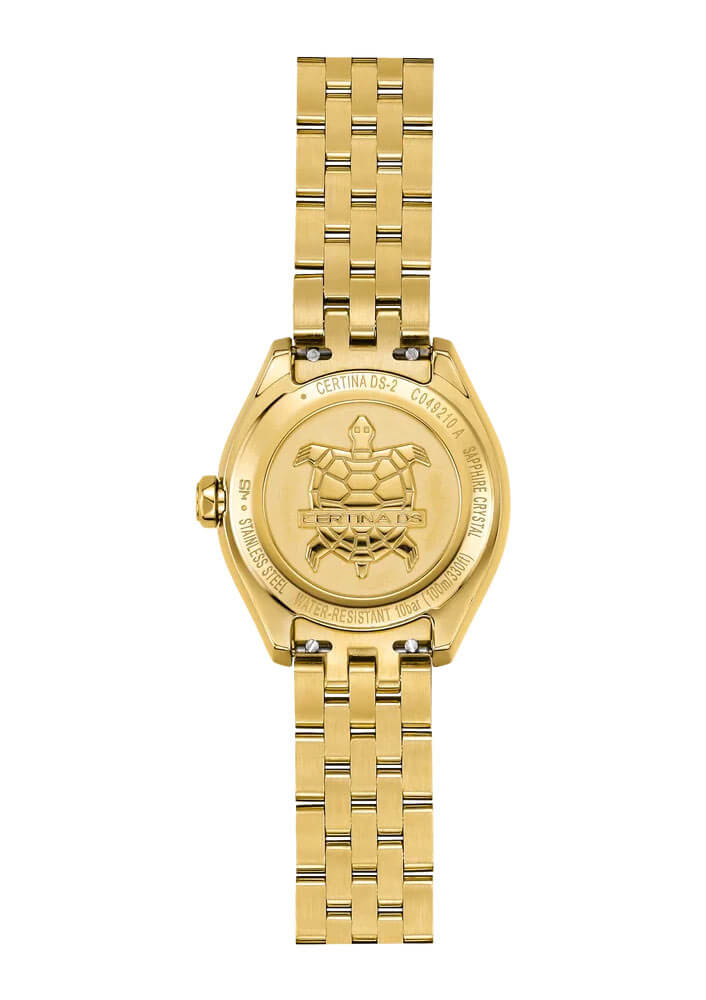 Navržený pro ženy, které spojují klasickou eleganci s výrazným smyslem pro individuální styl, pozlacené dámské hodinky Certina DS-2 Lady C049.210.33.116.00 jsou pokračováním tradice sahající až do roku 1968 – tehdy spatřily světlo světa první modely DS-2. Tuto variantu odlišuje sedm pravých diamantů umístěných na perleťovém číselníku, které dodávají lesk každému outfitu — od lehkých letních šatů po elegantní kostým na obchodní jednání. Jedná se o časoměřič vytvořený pro výjimečné příležitosti, ale i pro každodenní nošení, pro ženy, které si cení řemeslného zpracování, historie značky a decentního luxusu.