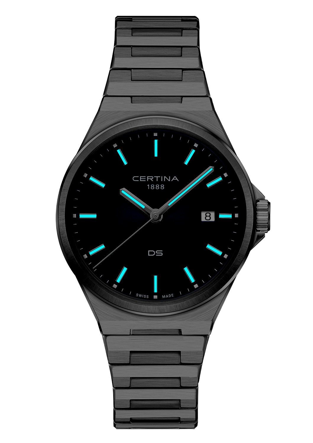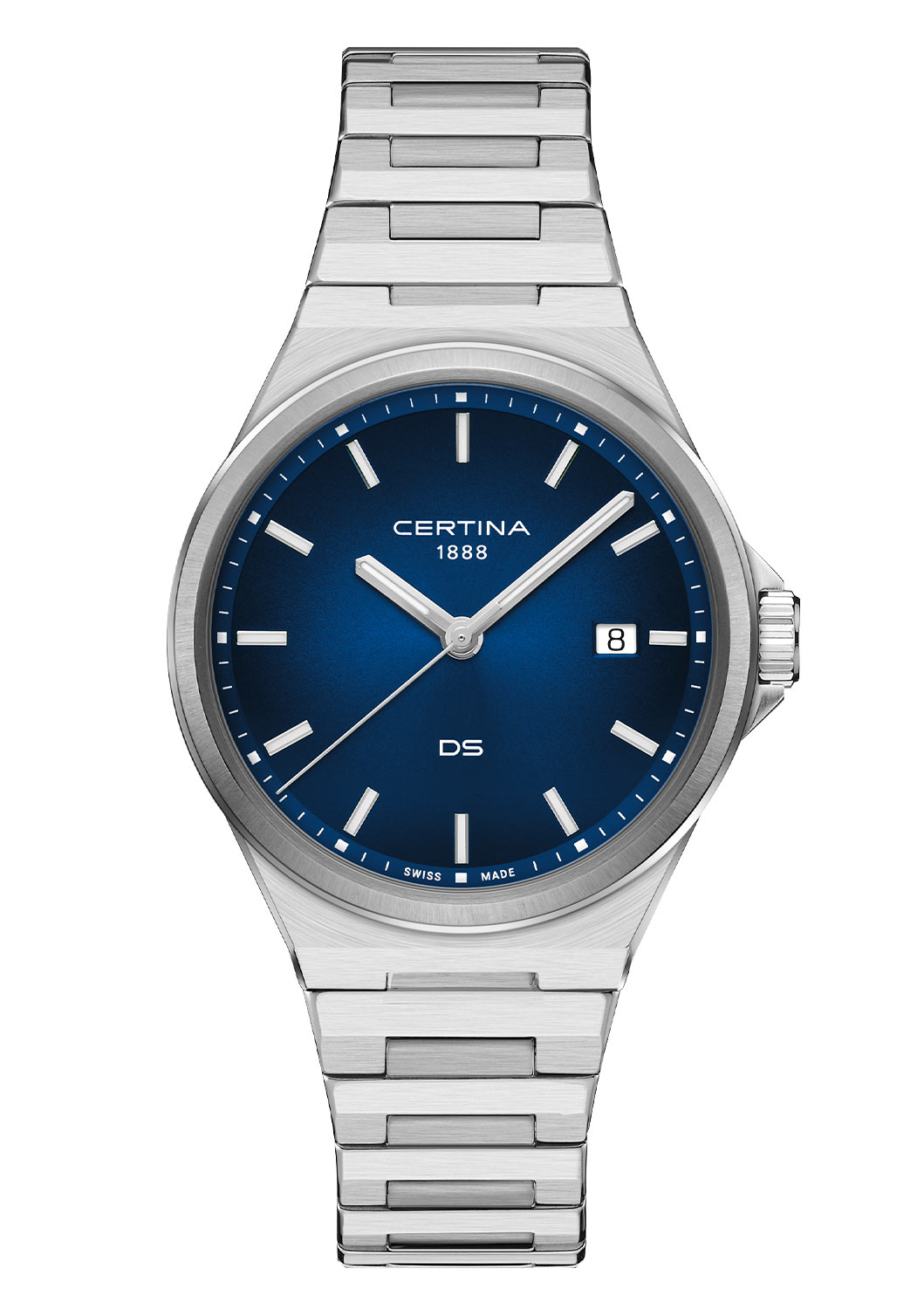 Esteticky atraktivním prvkem je modrý číselník. Ocelové indexy a ručičky zaručují čitelnost, která díky švýcarskému světelnému povlaku Super-LumiNova® zůstává zachována i ve tmě. Minimalistický ukazatel data na třetí hodině poskytuje pohodlný přístup k aktuálnímu datu. Celý číselník chrání proti poškrábání safírové sklíčko s antireflexní vrstvou. Hodinky s mechanismem ETA Precidrive™ představují nový směr ve sportovním stylu a nádech svěžesti v tradiční řadě sportovních hodinek Certina. Prezentované hodinky Certina DS-7 jsou dokonalým a stylovým doplňkem kombinovaným s švýcarskou precizností a budou kompletním doplněním šatníku.