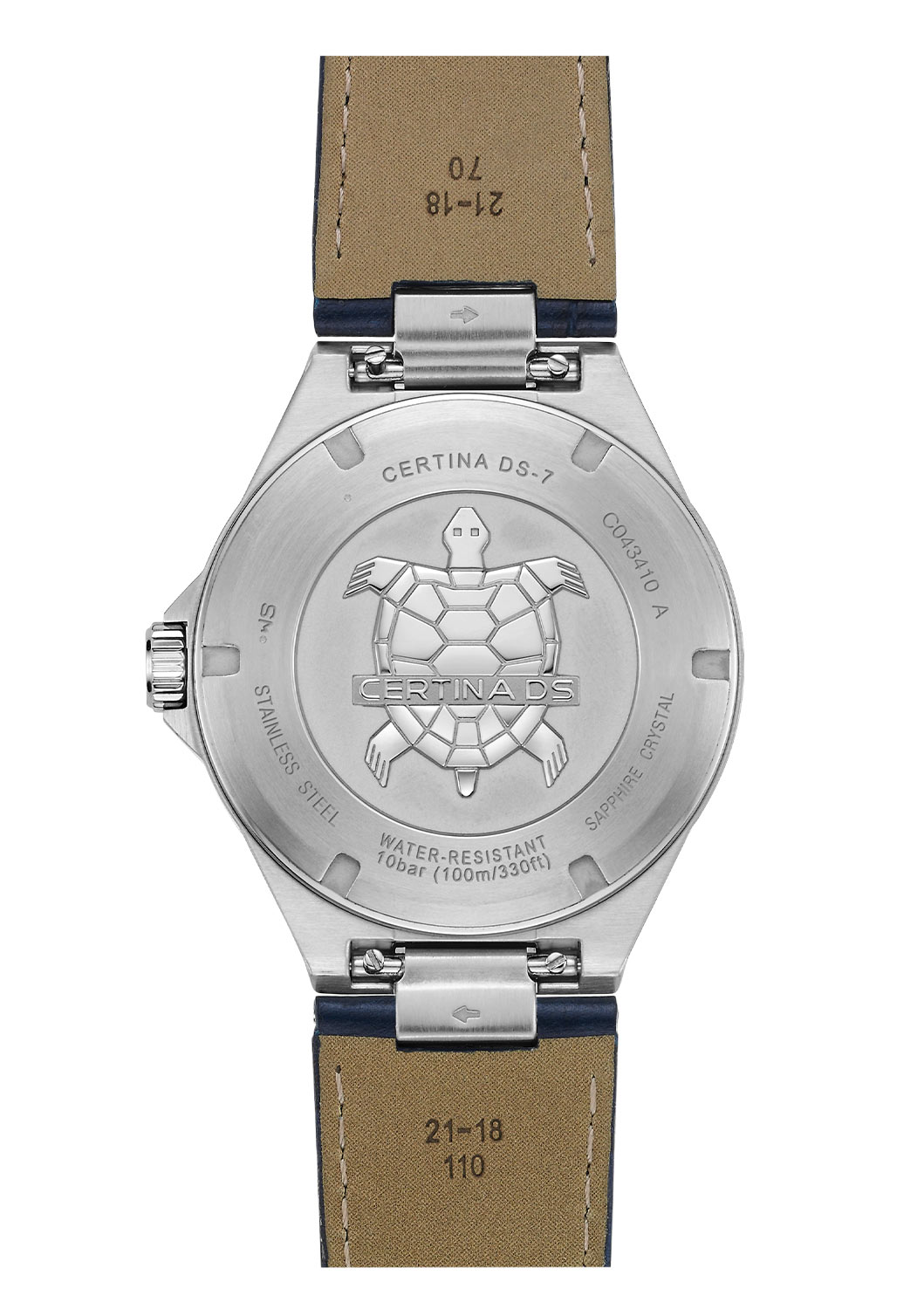 Atraktivním detailem je estetický modrý číselník. Ocelové indexy a ručičky zajišťují čitelnost, která díky švýcarskému světelnému povlaku Super-LumiNova® zůstává zachována i ve tmě. Minimalistický ukazatel data na třetí hodině poskytuje pohodlný přístup k aktuálnímu datu. Celý číselník chrání safírové sklíčko s antireflexní vrstvou, odolné proti poškrábání. Hodinky s mechanismem ETA Precidrive™ představují nový směr v moderním sportovním stylu a svěží vítr v tradiční řadě sportovních hodinek Certina. Prezentované hodinky Certina DS-7 jsou dokonalým a stylovým doplňkem kombinovaným se švýcarskou precizností a budou kompletním doplněním šatníku.