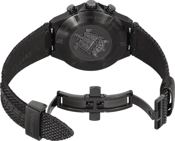Další výhodou pro sportovce a muže s vysokými požadavky na odolnost je systém Double Security, který je součástí specifikace pouzdra. Přítomnost konceptu duální ochrany zdůrazňuje pozlacené označení DS na luxusním číselníku a také rytina na korunce se speciálními kryty po stranách. Systém DS je od roku 1959 symbolem maximální odolnosti. Již více než šedesát let vynakládá Certina veškeré úsilí na výrobu hodinek, které budou schopny čelit všem výzvám, které život přináší. Postupem času byl systém Double Security neustále vylepšován tak, aby byl přizpůsoben aktuálním technickým standardům. Díky pozornosti věnované zpracování a kvalitě povrchových úprav však bylo dosaženo vynikajícího efektu sportovní elegance, která bude stejně atraktivní k nošení k fyzické aktivitě i k formálnějšímu outfitu.