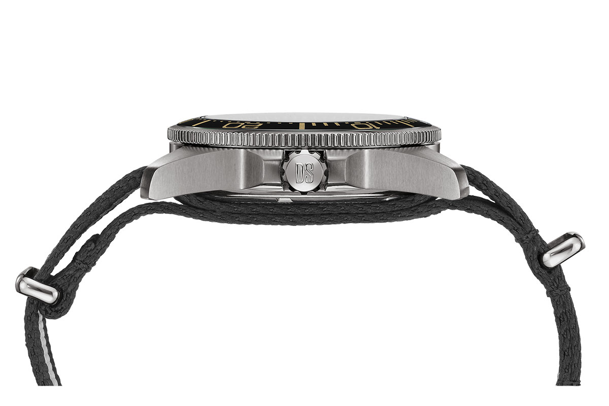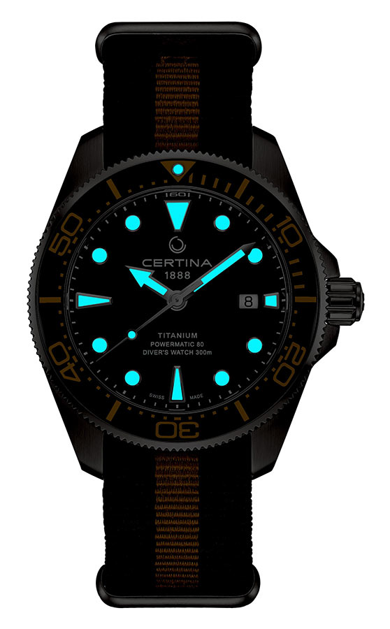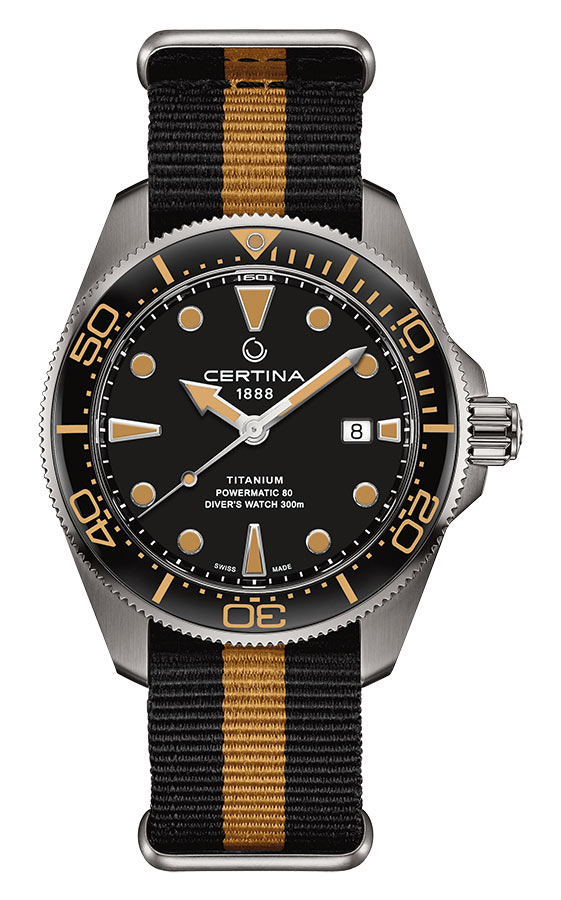 V nejnovější představené verzi dosáhly přednosti celé rodiny diverských hodinek nejvyšší úrovně. Certina DS Action Diver C032.607.48.051.00 je umístěn ve větším 43mm titanovém pouzdře než jeho předchůdce a stejně jako ostatní modely splňuje požadavky přísné normy ISO 6425 pro diverské hodinky. Luneta je vyrobena z keramiky odolné proti poškrábání a elegantně lesklé. Symbolické značky hodin pro divere a ručičky Broad Arrow jsou vyplněny retro směsí Super-LumiNova svítící ve tmě, zatímco černě lakovaný ciferník je chráněn nejkvalitnějším safírovým sklem, které nepoškrábe, s antireflexní vrstvou na vnitřní straně. . Pouzdro je vyrobeno z titanu, který poskytuje jak neuvěřitelnou lehkost, tak odolnost, což je zejména, ale nejen, pro sportovce. Titanové hodinky Certina jsou schopny zajistit bezpečnost pokožky nositele, a to díky chybějícímu obsahu alergenního niklu a vysoké tvrdosti povrchů. V této verzi je povrchová úprava také zaměřena na kartáčování, což dává náMachinei charakter. Hodinky jsou zavěšeny na dvoubarevném řemínku ve stylu NATO, který je vyroben z patentovaného #tide ocean material®, který se skládá z recyklovaného plastového odpadu vyloveného z oceánu.