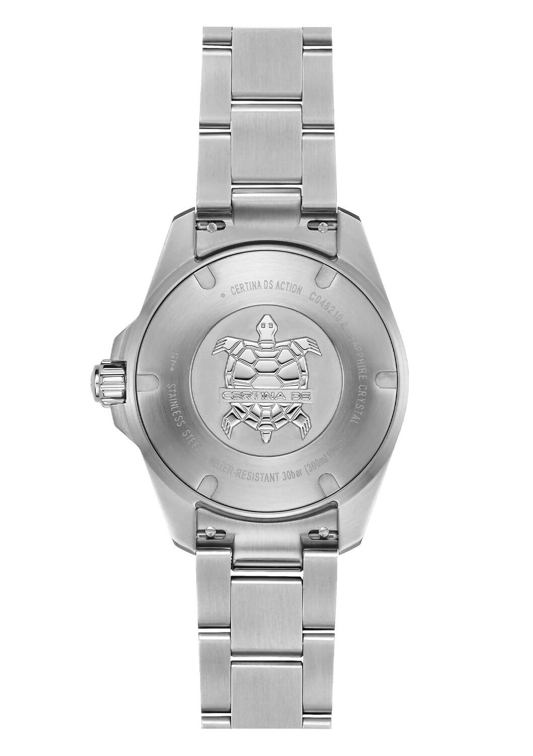 Hodinky Certina C0482101112100 jsou vyrobeny z nejkvalitnější ušlechtilé oceli třídy 316L, která je známá svou odolností proti korozi a poškození. Pouzdro o průměru 34.50 mm se jemně přizpůsobí dámskému zápěstí, zajišťujíc pohodlí i elegantní vzhled. Pevný ocelový náramek s praktickou motýlkovou sponou zaručuje pohodlné nošení a bezpečnost. Model nabízí vodotěsnost do 300 metrů, což umožňuje volné objevování podmořských hlubin. Dalšími přednostmi jsou šroubovací korunka a dýnko, které posilují konstrukci hodinek a zajišťují jejich spolehlivost i v extrémních podmínkách. Otočná luneta s minutovou stupnicí na pouzdře pomáhá sledovat uplynulý čas během ponoru nebo v jiných situacích.