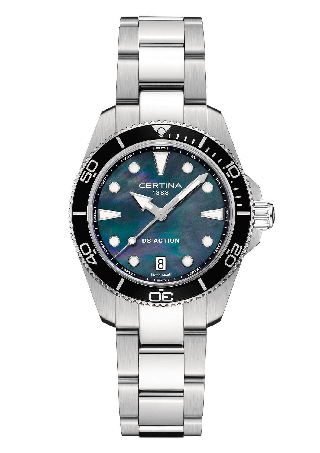 Elegantní ciferník z perleti podtrhuje sofistikovaný charakter hodinek. Díky použití luminiscenční vrstvy Super-Luminova, která pokrývá ručičky a indexy, je čas snadno čitelný i za slabého osvětlení nebo pod vodou. Dámské hodinky Certina pohání přesný švýcarský strojek ETA PreciDrive™, který zajišťuje výjimečnou přesnost v každé situaci. Toto harmonické spojení tradičního hodinářského řemesla a moderní technologie potěší každou milovnici luxusních hodinek.