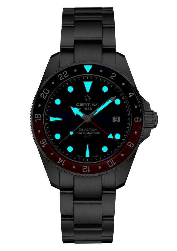 Certina DS Action GMT Powermatic 80 C032.929.11.041.00 jsou pánské hodinky, které dokonale spojují městskou eleganci se sportovní funkčností. Švýcarská hodinářská značka nabízí model speciálně vytvořený pro moderní cestovatele. Toto mistrovské dílo od švýcarského výrobce Certina bylo navrženo pro muže, kteří chtějí mít přehled o čase jak ve své domovské zemi, tak v cílové destinaci.