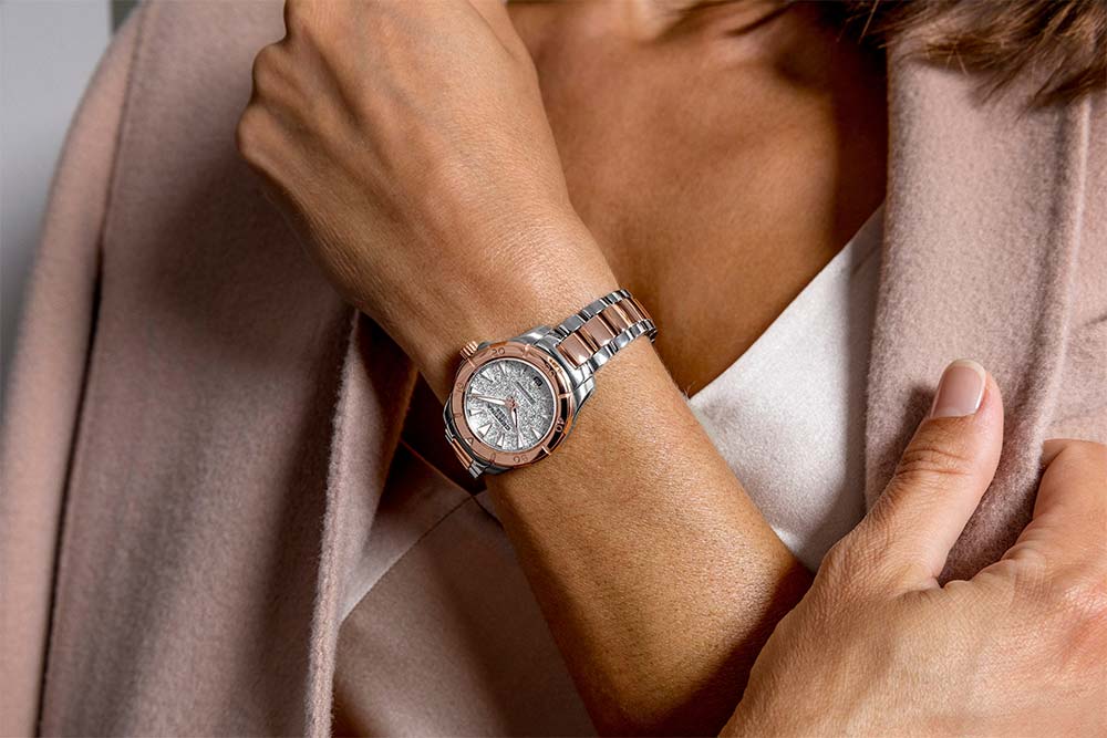 Elegantní verze sportovních hodinek. Certina DS Action Lady 29 mm C032.951.22.031.00 je nejnovější interpretací diverských hodinek pro dámy z ikonické kolekce DS Action . Krásně zdobené pouzdro o průměru 29 mm s matnými a leštěnými prvky. Na samý vrchol pouzdra Certina umístila otočnou diverskou lunetu v elegantním PVD zlacení. Stejná barva zdobí střed příjemného náramku, který se zapíná na knoflíky.