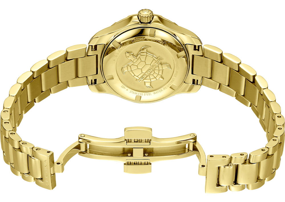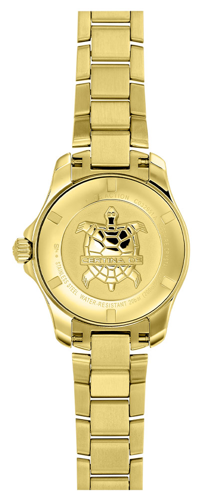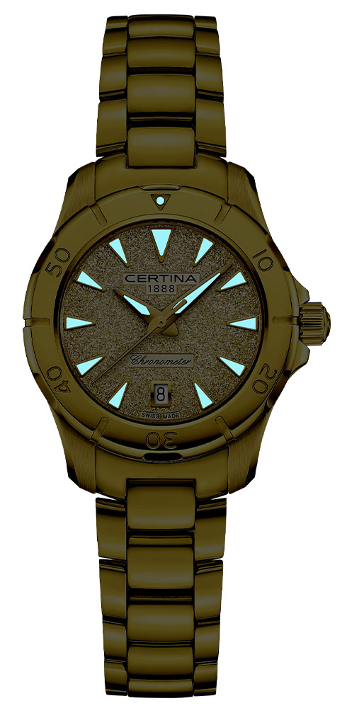 Certina DS Action Lady jsou velmi odolné hodinky s vysokou třídou vodotěsnosti 20 bar / 200 m, které umožňují plavání a potápění. Ikonický bezpečnostní systém Certina DS navíc chrání vnitřek hodinek proti polití a otřesům. Šroubovací korunka a zadní část pouzdra jsou další výhodou těchto hodinek. DS Action Lady 29 mm obsahuje nejen diverská řešení. Uvnitř pouzdra měří quartzový Machineek Precidrive™ harmonický rytmus pohybu, stejně přesný nad i pod vodní hladinou. Inovativní technologie Certina, která nyní pohání všechny nové značkové quartzové hodinky, získala prestižní certifikát chronometru švýcarskou laboratoří COSC. COSC stanovuje nejpřísnější požadavky na kvalitu pro moderní měřicí techniky a každé hodinky CERTINA DS Action Lady procházejí rozsáhlým testováním v institutu, než obdrží vlastní oficiální COSC certifikaci.
