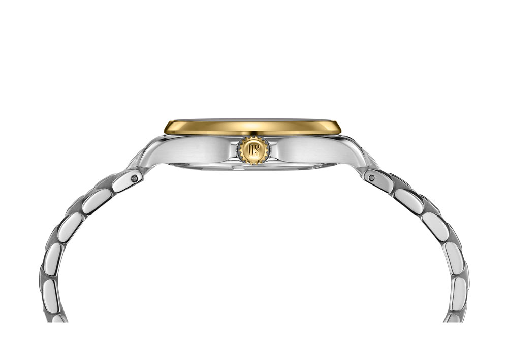 Jemná variace kolekce Certina DS Action Lady je mostem mezi dynamickým světem sportovních aktivit a zemí okouzlující, smyslné elegance. Jemné, 33.80 mm, ocelové pouzdro a dvoubarevný náramek hodinek jsou mistrnou kombinací různých povrchových úprav. Kartáčované prvky dokonale kontrastují s leštěnými povrchy ve zlatém PVD odstínu. Ocel je odolný materiál a vysoce odolná proti korozi a poškrábání, díky čemuž je dokonalým doplňkem outfitu aktivního uživatele. Zaujme vás také to, že hodinky jsou vodotěsné do 200 metrů. To znamená, že s ním můžete plavat a dokonce se i potápět.