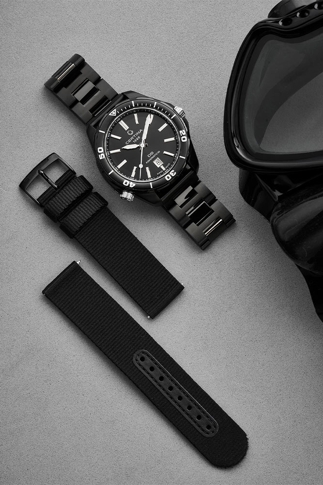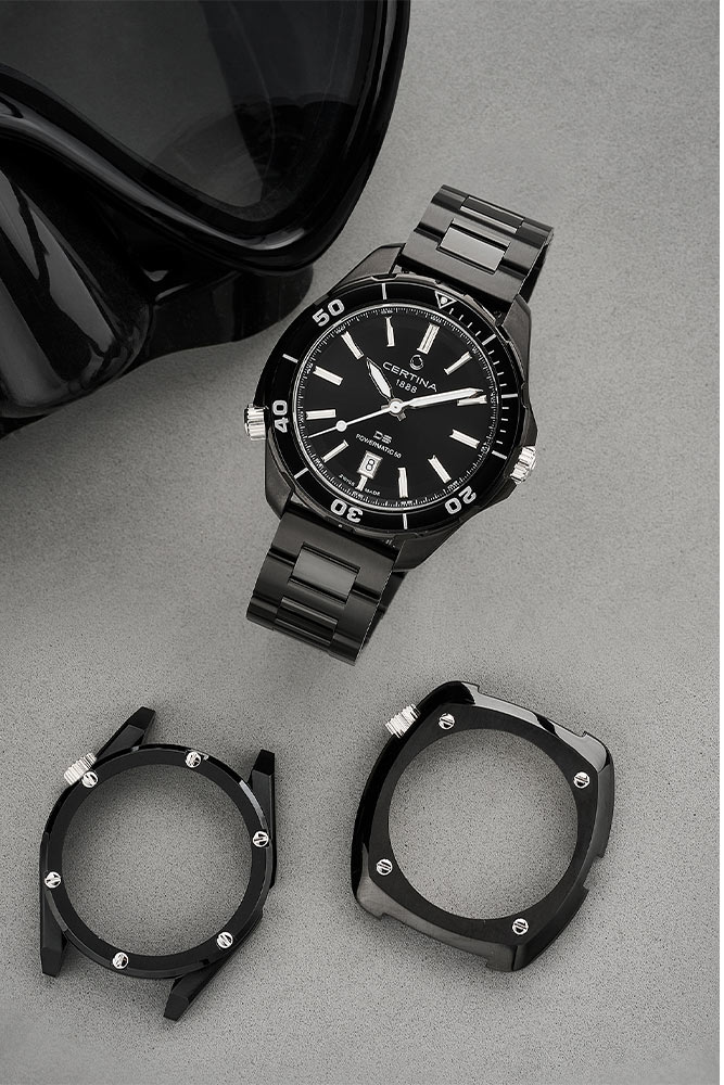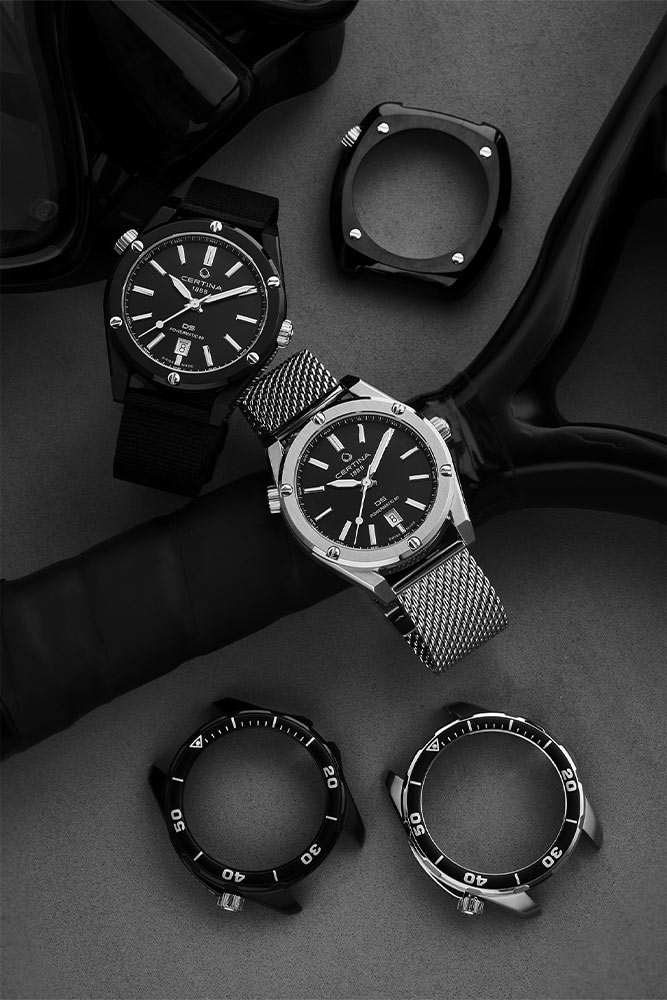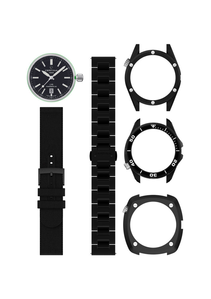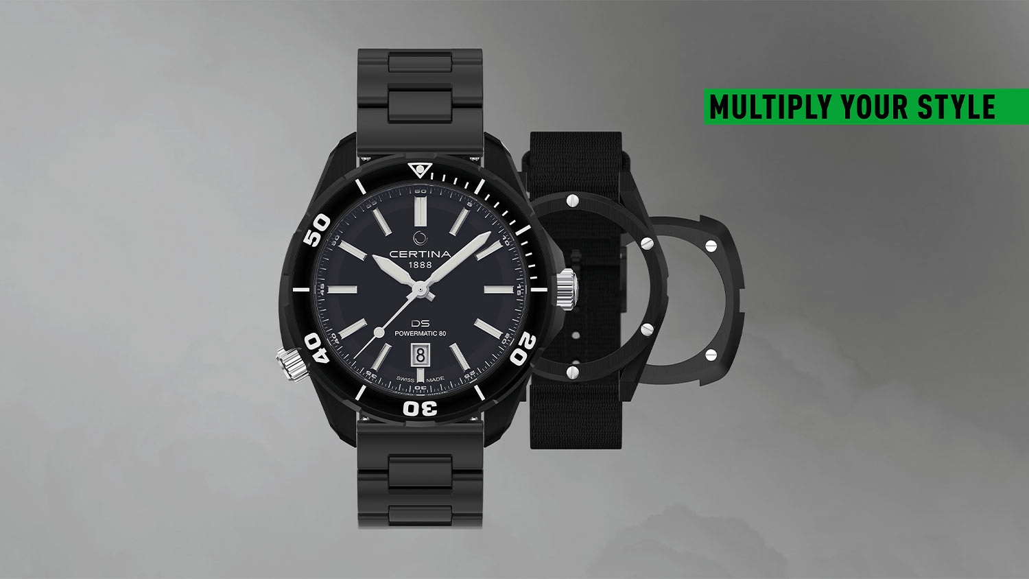 Inovativní model hodinek Certina DS+ C041.407.39.051.00 představuje nový koncept, který nabízí mnoho stylů v jednom modelu. Třídílný design umožňuje majitelům Certina DS+ kombinovat různé stylové řemínky s různými tvary pouzder. Nyní, o krok dále, Certina zvyšuje počet možností personalizace pro model DS+ přidáním tří nových obálek. Každý lze nosit s novým náramkem z nerezové oceli se třemi řadami článků nebo s odolným popruhem z eko-látky #tide ocean material® – obě varianty jsou dostupné v černé barvě. Model Certina DS+ se vrací jako dokonalý doplněk k módnímu outfitu v jakémkoli stylu a barvě a nyní je dostupný také v celočerné verzi.