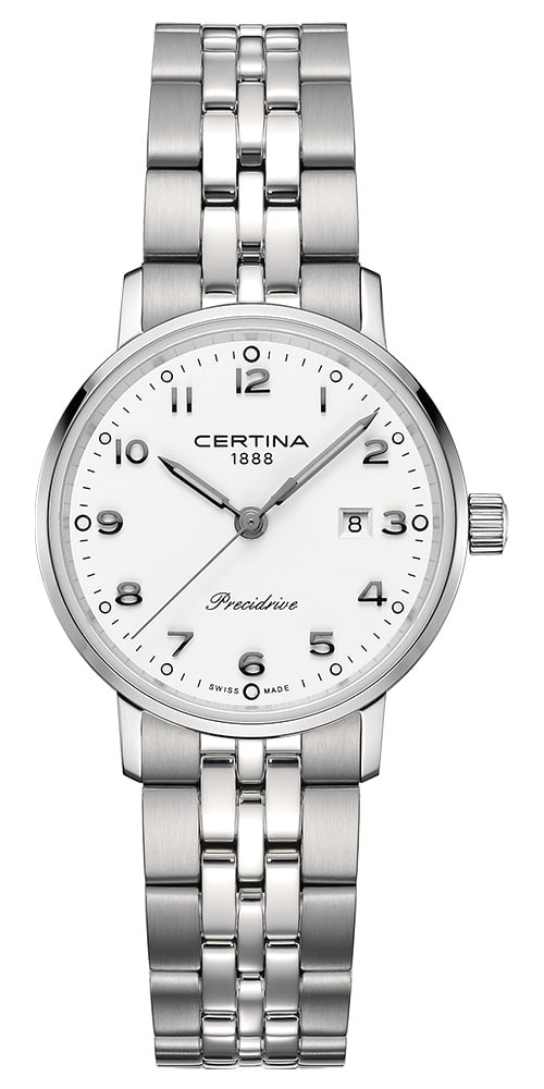 Dámské hodinky Certina DS Caimano Lady Precidrive C035.210.11.012.00 , tradiční hodinky pro elegantní ženu. Tenké pouzdro s tenkými vyčnívajícími očky dokonale ladí s koženým řemínkem. Přestože se jedná o klasické hodinky, vyznačují se působivou odolností proti nárazům a vysokou třídou vodotěsnosti 10 bar / 100 M, a to díky systému ochrany DS (Double Security). Uvnitř hodinek pracuje nejkvalitnější quartzový Machineek napájený baterií Precidrive™.