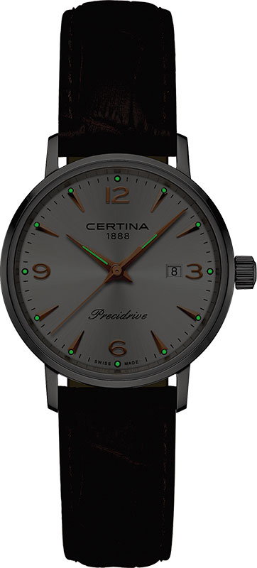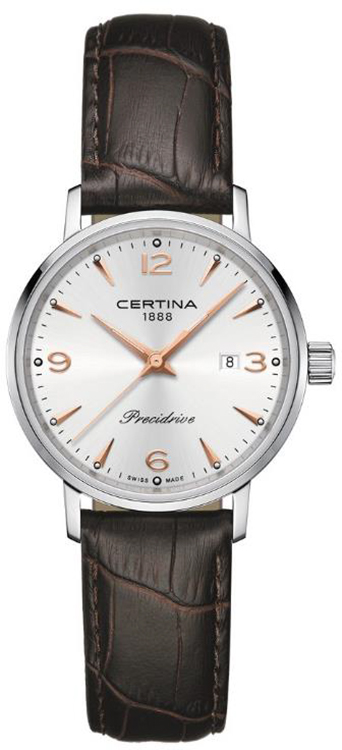 Dámské hodinky Certina DS Caimano Lady Precidrive C035.210.16.037.01 , tradiční hodinky pro elegantní ženu. Tenké pouzdro s tenkými vyčnívajícími očky dokonale ladí s koženým řemínkem. Přestože se jedná o klasické hodinky, vyznačují se působivou odolností proti nárazům a vysokou třídou vodotěsnosti 10 bar / 100 M, a to díky systému ochrany DS (Double Security). Uvnitř hodinek pracuje nejkvalitnější quartzový Machineek napájený baterií Precidrive™.
