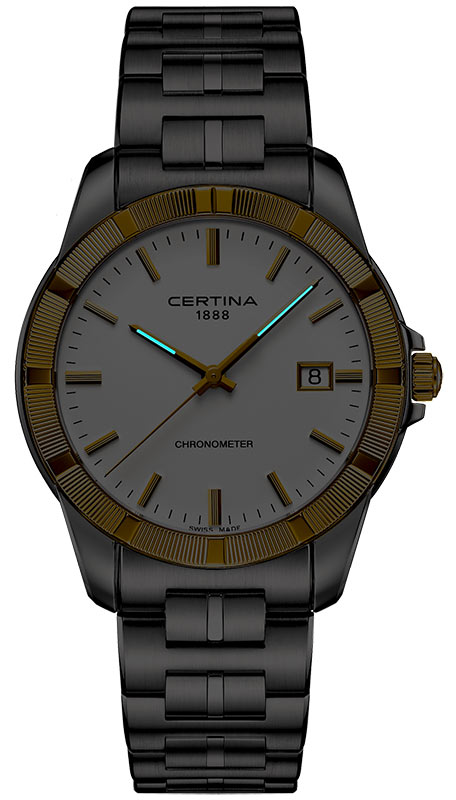 Zlato - jeden z nejkrásnějších a nejcennějších stavebních materiálů, jehož lesku neodolá žádný muž. Některé to obohacuje, jiné přivádí k šílenství. Jediný pohled na tyto exkluzivní hodinky stačí k tomu, abyste se zcela poddali jeho kouzlu. Zlatá surovina je po staletí ceněná a vyhledávaná. A není divu. Jeho hřejivý třpyt dokonale zvýrazňuje všechny tóny pleti - ženy i muže. Zlato se také stalo globálním ukazatelem dlouhodobé hodnoty. Mimo jiné i z tohoto důvodu se je výrobci Certina, jejichž cílem je co nejvyšší a věčná odolnost, rozhodli použít k výrobě dalekohledu jako celek. Pevný rámeček z 18K žlutého zlata dělá z těchto hodinek skvělý příklad švýcarského hodinářství, které je stejně úžasné jako nadčasové.