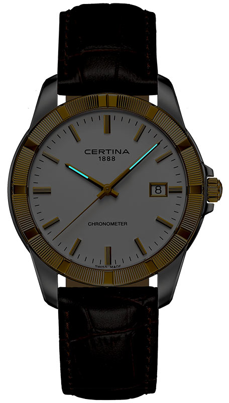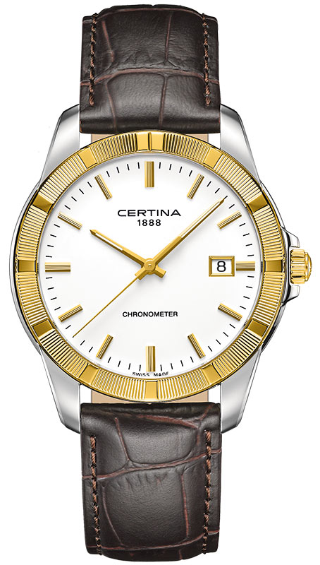 Zlato - jeden z nejkrásnějších a nejcennějších stavebních materiálů, jehož lesku neodolá žádný muž. Někoho obohacuje, jiného přivádí k šílenství. Jediný pohled na tyto exkluzivní hodinky stačí k tomu, abyste se zcela poddali jeho kouzlu. Zlatá surovina je po staletí ceněná a vyhledávaná. A není divu. Jeho hřejivý třpyt dokonale zvýrazňuje všechny tóny pleti - ženy i muže. Zlato se také stalo globálním ukazatelem dlouhodobé hodnoty. Mimo jiné i z tohoto důvodu se je výrobci Certina, jejichž cílem je co nejvyšší a věčná odolnost, rozhodli použít k výrobě dalekohledu jako celek. Pevný rámeček z 18K žlutého zlata dělá z těchto hodinek skvělý příklad švýcarského hodinářství, které je stejně úžasné jako nadčasové.
