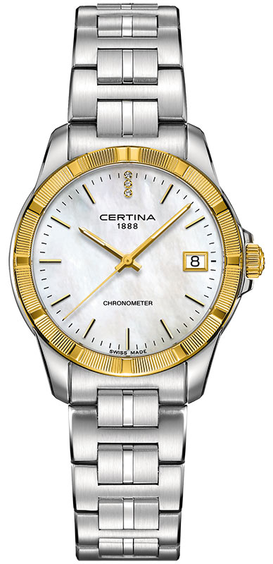 Zlato, diamanty, perleť – jeden z nejkrásnějších a nejcennějších stavebních materiálů, kterému žádná žena krásně neodolá. Jediný pohled na tyto exkluzivní hodinky stačí k tomu, abyste se zcela poddali jeho kouzlu. Zlatá surovina je po staletí ceněná a vyhledávaná. A není divu. Jeho hřejivý lesk dokonale zvýrazní všechny tóny pleti, což už zjistilo mnoho žen. Zlato se také stalo globálním ukazatelem dlouhodobé hodnoty. Mimo jiné i z tohoto důvodu se je výrobci Certina, jejichž cílem je co nejvyšší a věčná odolnost, rozhodli použít k výrobě dalekohledu jako celek. Pevný rámeček z 18K žlutého zlata dělá z těchto hodinek skvělý příklad švýcarského hodinářství, které je stejně úžasné jako nadčasové.