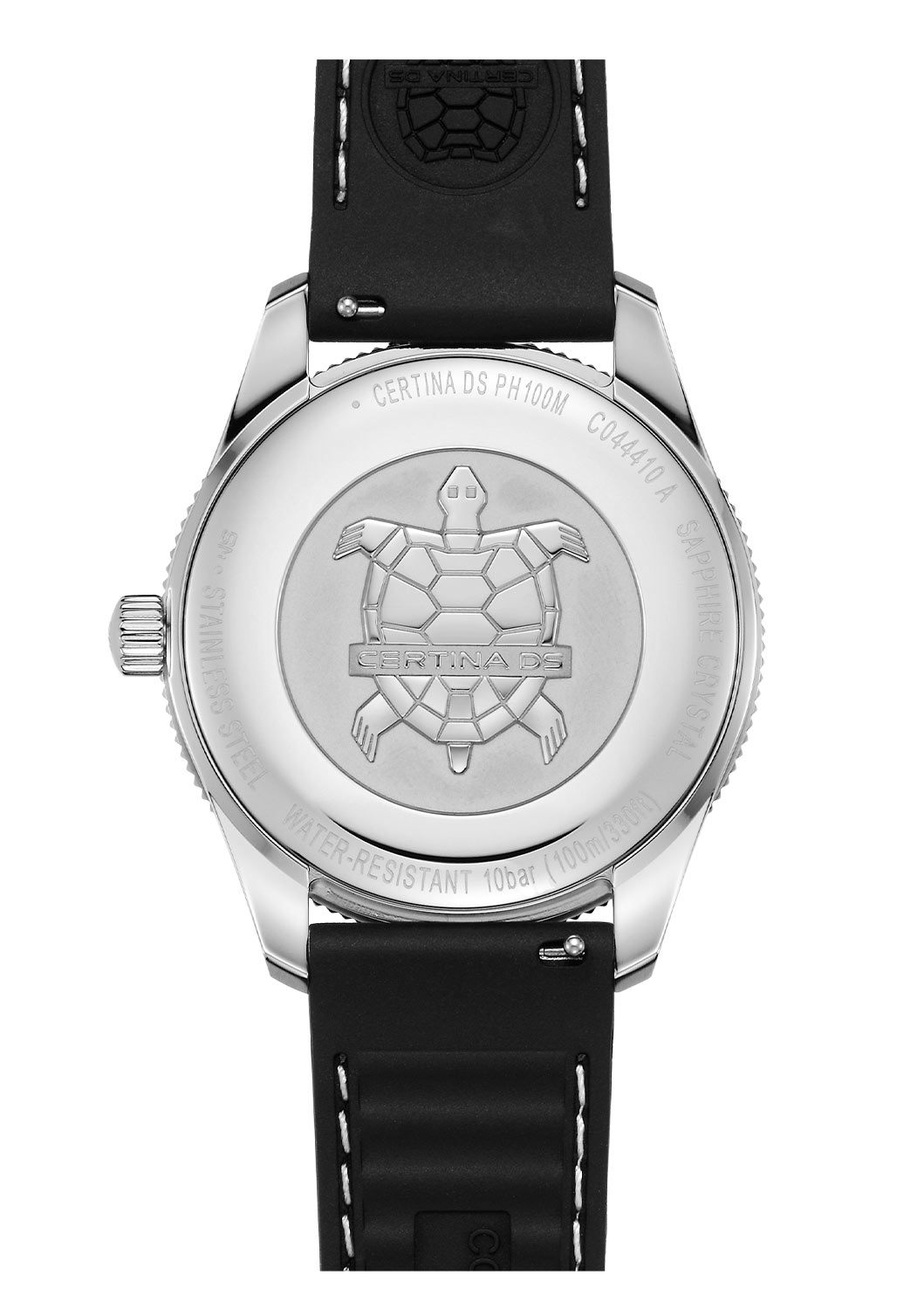 Pánské hodinky Certina jsou vybaveny mimořádně odolným safírovým sklem s antireflexní úpravou, které je odolné proti poškrábání. Sklo chrání černý číselník. Čas ukazují velké ručičky pokryté luminiscenční vrstvou Super-LumiNova®, která svítí ve tmě. Svítící značka se nachází také na indexech a na pozici dvanácti hodin na otočné lunetě. Funkčnost číselníku doplňuje okénko s datem na pozici třetí hodiny. Na světlém pozadí je zobrazován aktuální den v měsíci. Vše pohání švýcarský mechanismus ETA Precidrive™, který je známý svou vysokou přesností. Strojek disponuje užitečnou funkcí úspory energie. Když bude potřeba vyměnit baterii, systém End Of Life zpomalí pohyb sekundové ručičky – bude se pohybovat po několika sekundách.