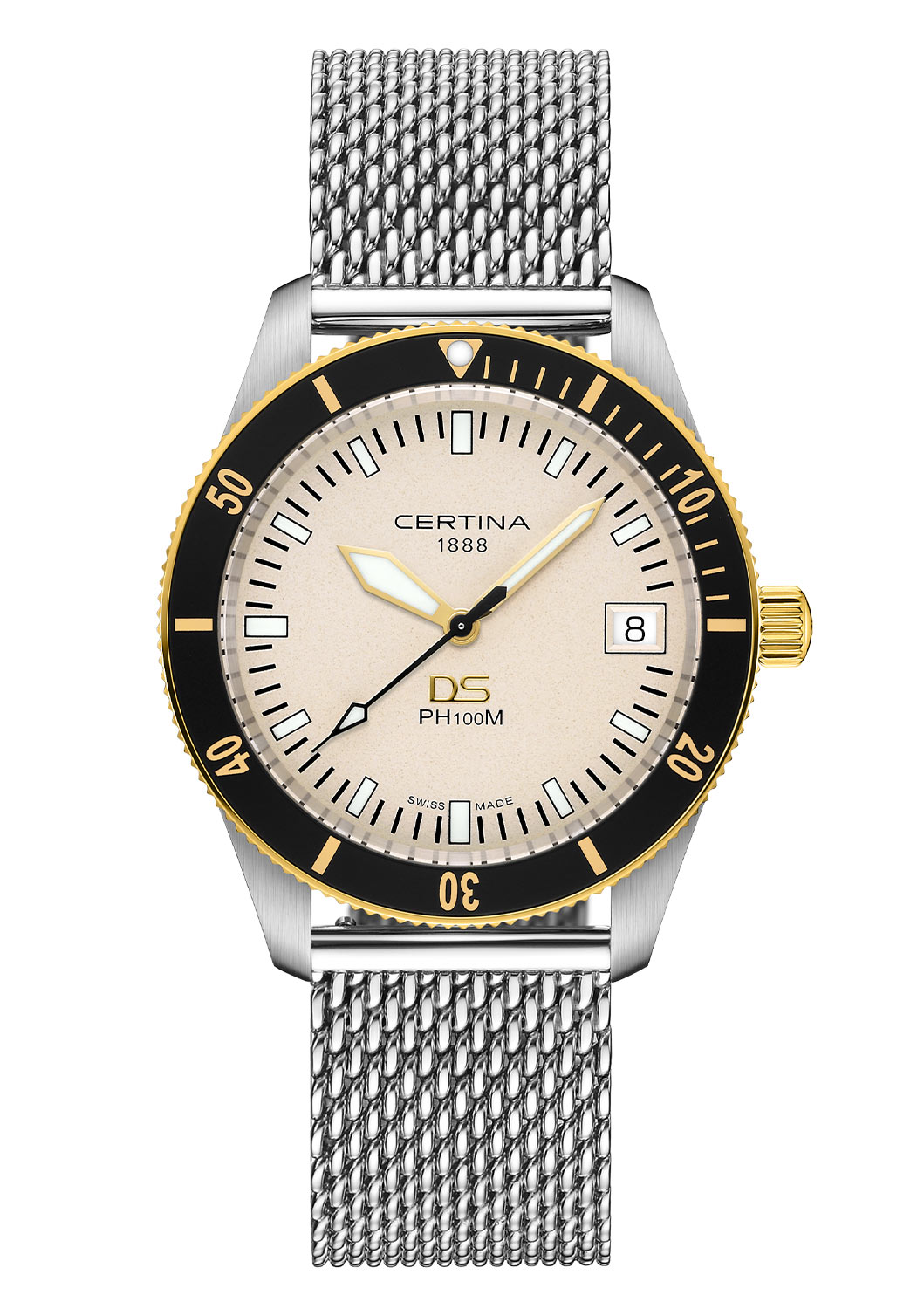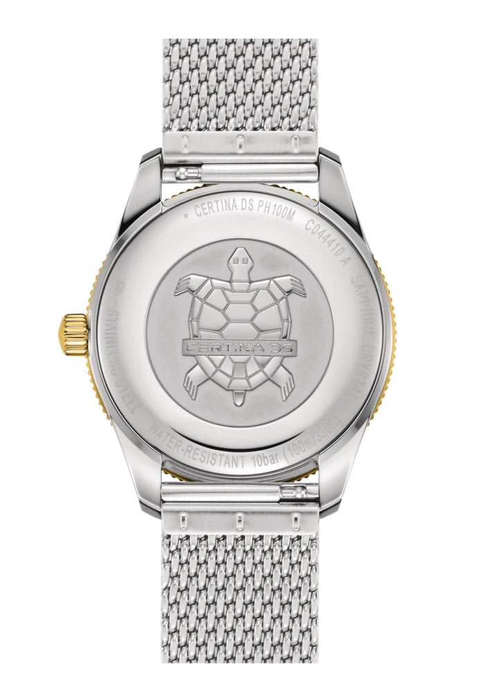 Hodinky Certina DS PH100M Gent C0444102103000 mají kulaté pouzdro z ušlechtilé oceli. Pouzdro o průměru 40,50 mm je vodotěsné do 100 metrů, což umožňuje různé aktivity, včetně plavání. Pouzdro je doplněno otočným lunetou s minutovou stupnicí. Korunka na pravé straně je velká a snadno ovladatelná. Celou konstrukci uzavírá ocelový zadní kryt. Hodinky jsou zpevněny patentovaným systémem Certina DS (Double Security). Tento sofistikovaný systém utěsňuje celou konstrukci tak, aby byla chráněna proti prachu, blátu a nárazům. Model je zavěšen na ocelovém milánském náramku se zapínáním typu motýlek.