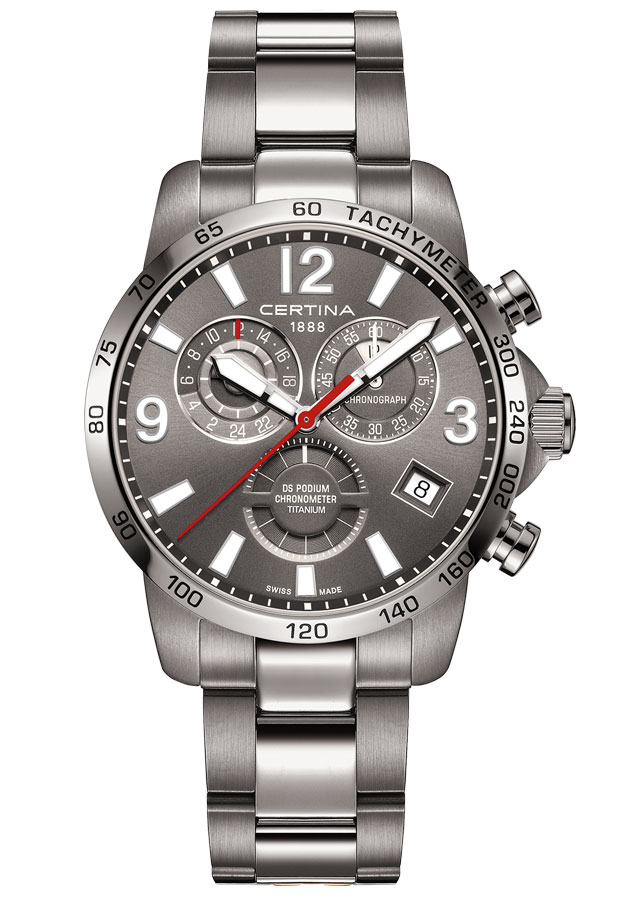 Pánské hodinky Certina DS Podium Chronograph GMT Titanium COSC Chronometer C034.654.44.087.00 . Vytvořeno pro milovníky sportu a vysokorychlostního života, kteří od svého outdoorového vybavení očekávají nejvyšší úroveň. Milovníkům extrémních sportů se bude hodit nejen přesnost, odolnost, ale i doplňková funkce času GMT. Dynamická povaha chronografu, který bude skvělý pro každou výzvu, kterou před něj jeho aktivní uživatel postaví.