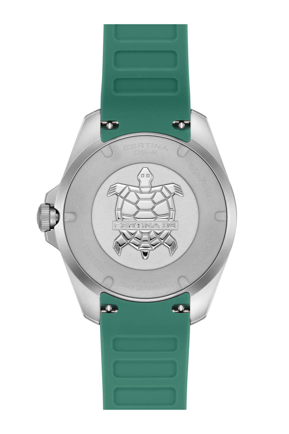 Pouzdro o průměru 41,50 mm je vyrobeno z odolné ušlechtilé oceli a doplněno o zelný gumový pásek – voděodolný, pružný a pohodlný na nošení. Model nabízí vodotěsnost do 200 metrů, díky čemuž si bez problému poradí s plaváním, plachtěním i vodními sporty. Šroubovací korunka s dodatečnou ochranou a safírové sklíčko s antireflexní vrstvou zvyšují odolnost vůči každodenním výzvám. Uvnitř tiká švýcarský quartzový strojek s technologií HeavyDrive™, která absorbuje nárazy a zajišťuje přesnost.