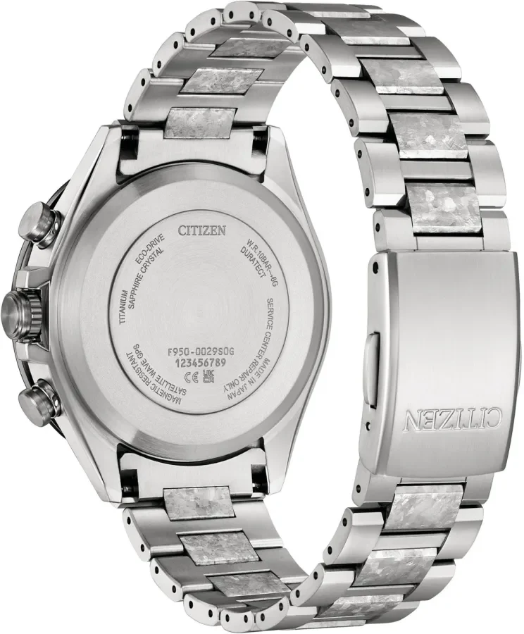 Pouzdro i náramek jsou vyrobeny z inovativního materiálu Super Titanium™, který se vyznačuje mimořádnou lehkostí, vysokou odolností proti poškrábání a dlouhou životností. V tomto modelu je navíc použita technologie Platinum Recrystallized, která povrchu dodává jedinečnou krystalickou strukturu připomínající přírodní minerály. Díky tomu získávají jak náramek, tak ciferník jedinečný vícerozměrný vzhled – elegantní, ale současně moderní a unikátní. Povrch pod různými úhly odráží světlo, čímž vytváří dojem hloubky a luxusu, který je u jiných hodinek této třídy obtížně dosažitelný.