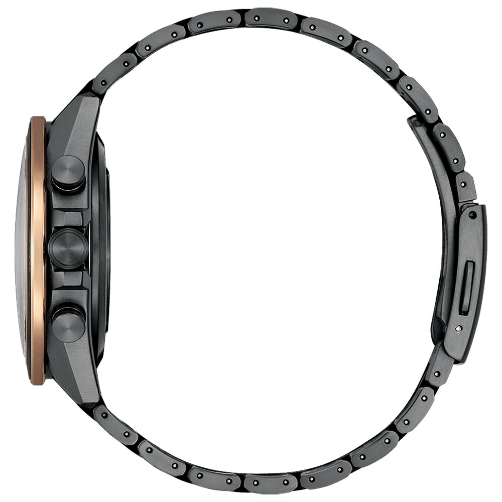 Citizen Attesa Satellite Wave GPS CC4074-61W jsou hodinky, které spojují pokročilou technologii s moderním a zároveň elegantním designem. Jejich titanové pouzdro a náramek z Super Titanium™ zajišťují lehkost a odolnost proti poškrábání, a díky povrchové úpravě Duratect je povrch hodinek mimořádně tvrdý a odolný vůči poškození. Černé pouzdro s prvky v barvě růžového zlata podtrhuje jejich prestižní charakter, zatímco černý, dobře čitelný ciferník s měděnými detaily dodává sportovní výraz.