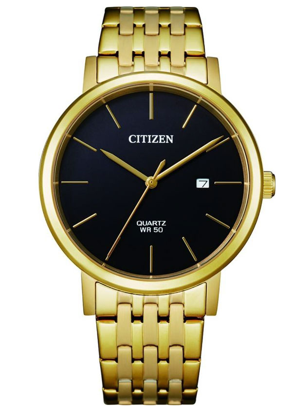 Klasické pánské hodinky Citizen BI5072-51E v elegantní edici. Čitelný černý ciferník s jednoduchými indexy. Hroty naostřené na konci jsou také jednoduché. Pouzdro i náramek jsou vyrobeny z pozlacené nerezové oceli, průměr 40,50 mm se za košili nezachytává a svým tvarem perfektně pasuje k obleku. Třída těsnění WR50, 5 bar poskytuje ochranu proti postříkání. Přesné měření času zajišťuje bateriový Machineek quartz.