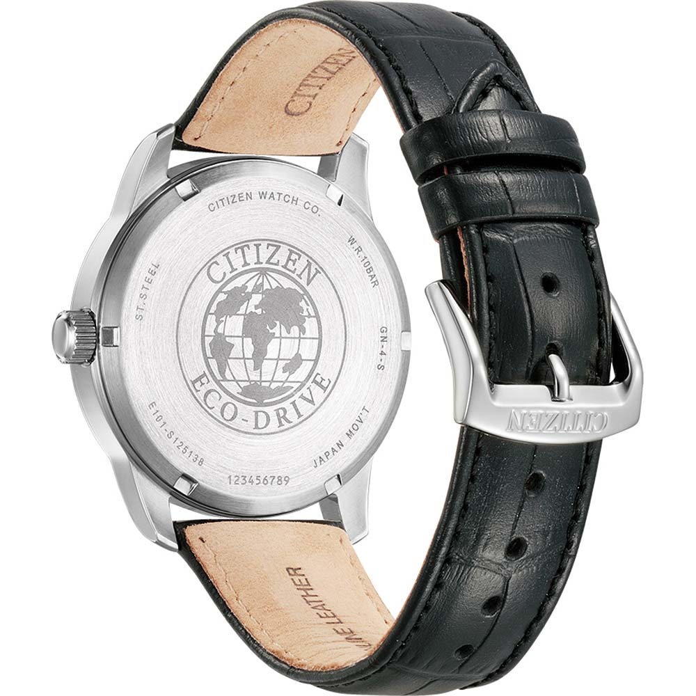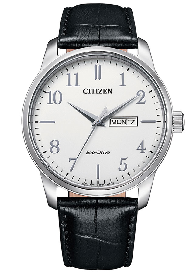 Elegantní hodinky Citizen BM8550-14AC určené pro muže. Klasické nerezové pouzdro o průměru 42 mm, uzavřené minerálním sklem. Bílý ciferník zdobený čitelnými arabskými indexy. Na tři hodiny japonský výrobce umístil rozšířené datumové okno. Zobrazuje číslo dne v měsíci a název dne v týdnu. Špičaté ruce dodávají eleganci. Ve spodní části hodinek je šroubovací pouzdro, které utěsňuje celou konstrukci na 10 bar / 100 m, což umožňuje plavání s hodinkami. Citizen použil ikonický mechanismus Eco-Drive , který je napájen světlem, čímž odpadá nutnost výměny baterie. Jde o ekologické a ekonomické řešení, které Citizen neustále vyvíjí.