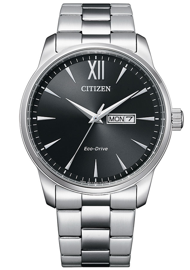 Elegantní hodinky Citizen BM8550-81EC určené pro muže. Klasické nerezové pouzdro o průměru 42 mm, uzavřené minerálním sklem. Šedý ciferník zdobí čitelné indexy ve tvaru šípu. Na tři hodiny japonský výrobce umístil rozšířené datumové okno. Zobrazuje číslo dne v měsíci a název dne v týdnu. Špičaté ruce dodávají eleganci. Ve spodní části hodinek je šroubovací pouzdro, které utěsňuje celou konstrukci na 10 bar / 100 m, což umožňuje plavání s hodinkami. Citizen použil ikonický mechanismus Eco-Drive , který je napájen světlem, čímž odpadá nutnost výměny baterie. Jde o ekologické a ekonomické řešení, které Citizen neustále vyvíjí.