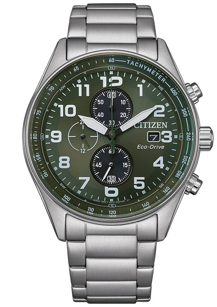 Pánské hodinky Citizen Urban Chronograph CA0770-72X v městském stylu. Ocelový náramek a pouzdro v matném provedení s jemnými leštěnými akcenty. Uvnitř 43mm pláště umístil japonský výrobce zelený ciferník zdobený sunburstem. Tento vzor distribuuje světelné paprsky od středu k okrajům ciferníku a poskytuje zajímavý a poutavý efekt. Bílé arabské indexy v kombinaci s tlustými ručičkami zajišťují čitelnost za všech podmínek.